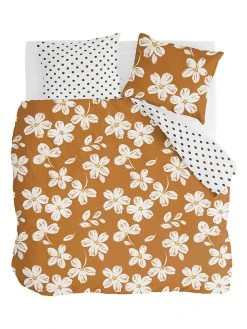 Walra Bettwäsche-Set “Stripes & Stitches” In Weiß/ Cognac/ Blau