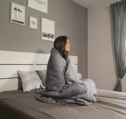 Schlüpfen Sie unter die Gewichtsdecke und genießen Sie das Gefühl der Entspannung.