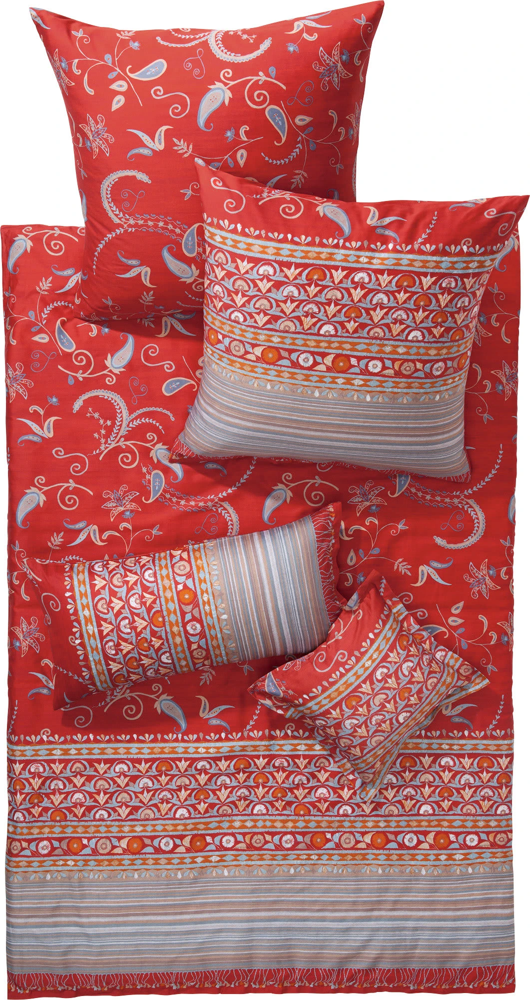 Bassetti Feinsatin Bettwäsche “Lilith”. Das Design Lilith geht auf eine Persönlichkeit der sumerischen Mythololgie und die Kultur des Paisley-Musters zurück. Besonders effektvoll ist das Fransenmotiv, welches den Abschluss des Designs bildet. Kissenbezüge in Wendeoptik mit Stehsaum. Die edel glänzende, farbbrillante Premium-Qualität verwöhnt Sie mit ihrem wunderbar seidigen Griff. Einfach zu beziehen durch den praktischen Marken-Reißverschluss. Aus feinsten, gekämmten und mercerisierten Garnen.