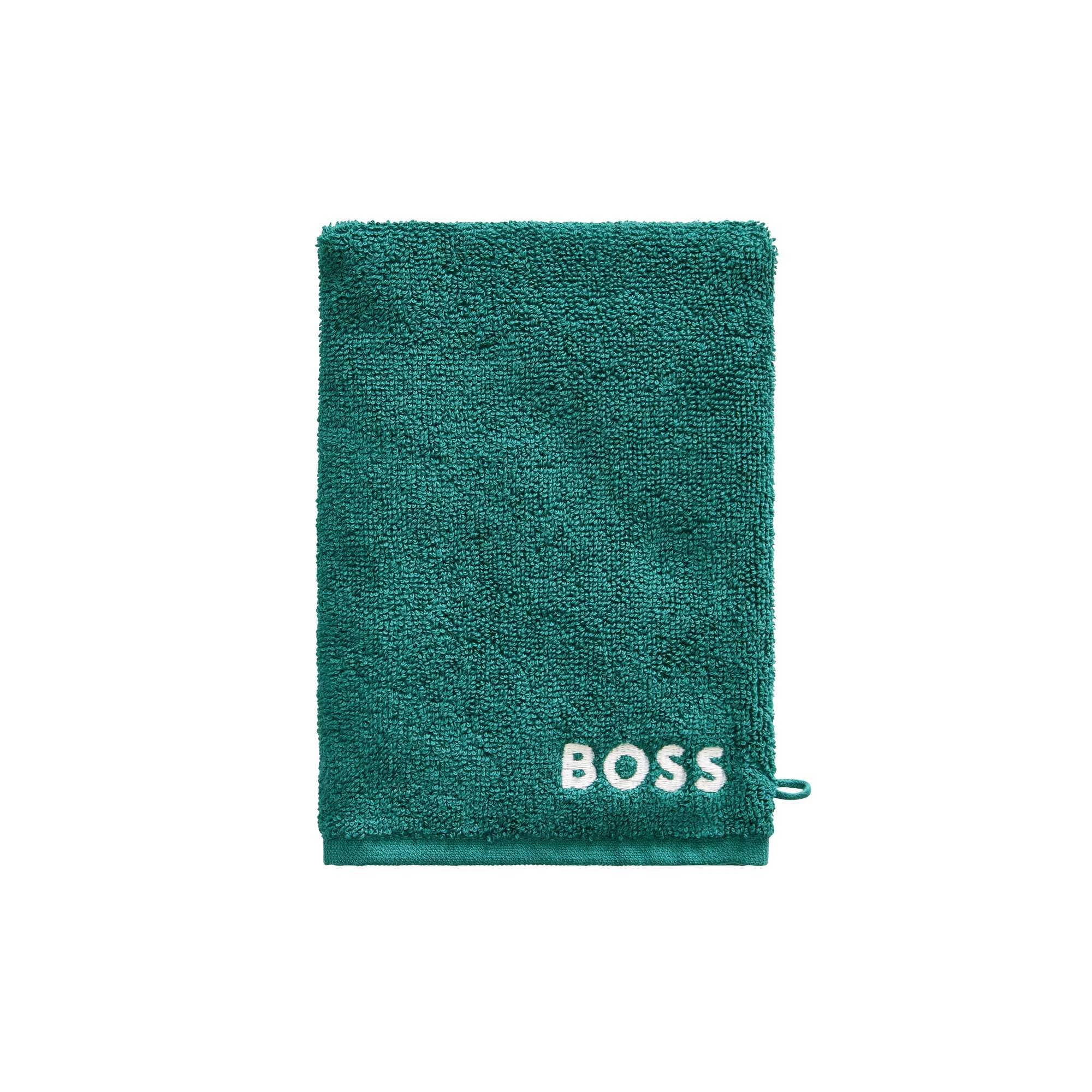 Einfarbiger BOSS Waschhandschuh mit eingesticktem Logo. Hochwertige eng gewebte Frottee-Qualität aus-Baumwolle.