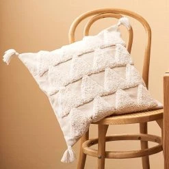 Mit Beginn der Winterzeit stellen Sie Ihre Uhren eine Stunde zurück und Ihre Deko auf kuschelig um. Da findet das Natural High Kissen aus beiger Baumwolle mit Troddeln und Dreieck-Muster mit 3-D-Effekt schnell einen Platz auf Ihrem Sofa oder Bett. Mit Reißverschluss, inkl. Füllung.