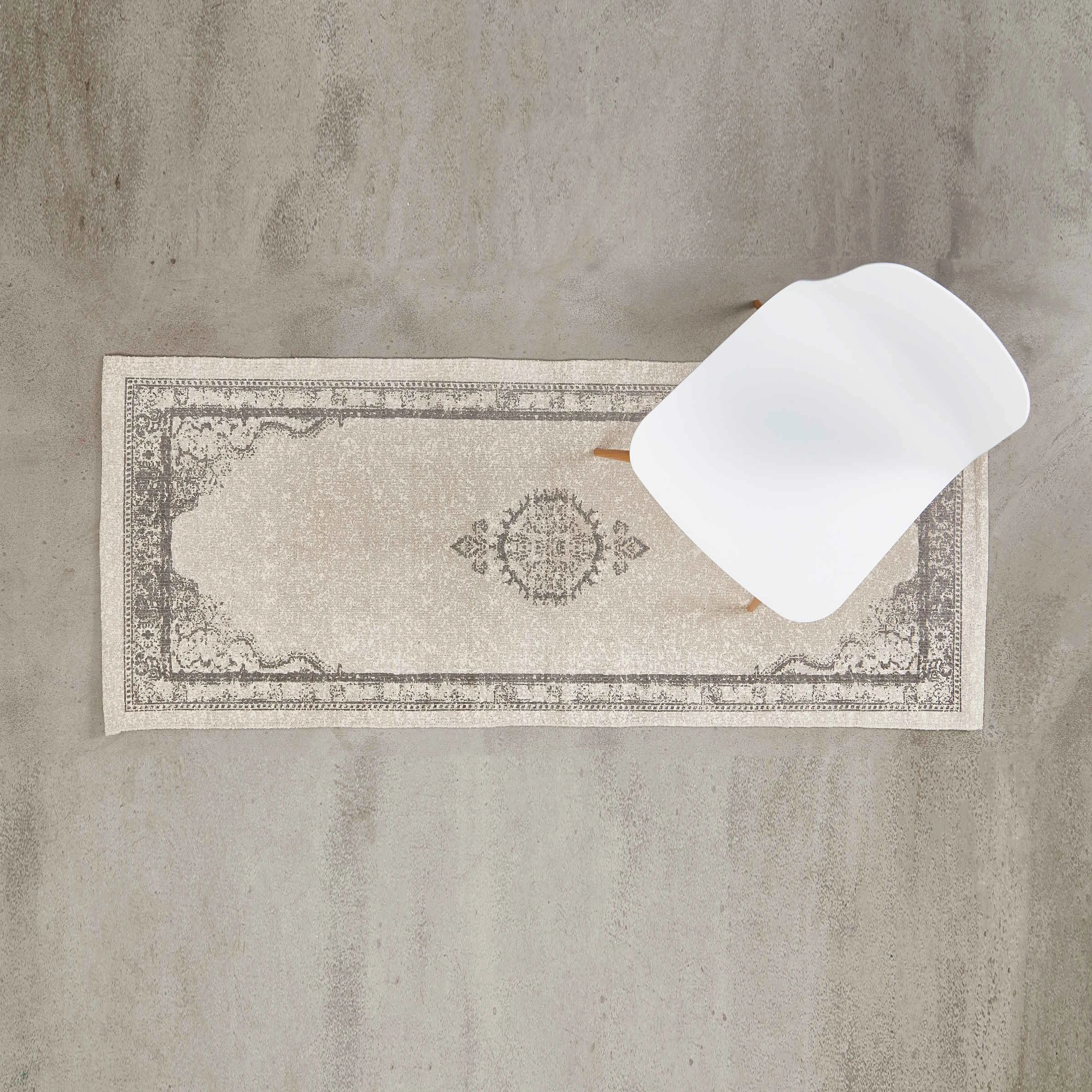 Der hellgrau-farbene Silent Dancer Baumwoll-Läufer im Vintage-Look gibt Ihnen einen schönen Grund, öfter barfuß durch Ihr Leben und Zuhause zu tanzen. Ob im Wohnzimmer, im Flur oder Schlafzimmer, zu Musik oder den Melodien in Ihrem Kopf. Weitere Varianten und Teppiche erhältlich.