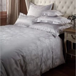 Curt Bauer Mako-Brokat-Damast Bettwäsche “Eleonore”. Die exklusive Bettwäsche im hochwertigen Buntgewebe zeigt ein modernes Muster, das an kleine Wolkenwirbel erinnert und durch den changierenden Matt-Glanz-Effekt elegant in Szene gesetzt wird. Sehr elegant wirkt der 4-seitige Stehsaum des Kissenbezugs. Lassen Sie sich von dem feinen Glanz und dem seidigen Griff verführen und erleben Sie Schlafkomfort für allerhöchste Ansprüche. Feinste, supergekämmte und mercerisierte Garne ergeben ein luxuriöses, streichelzartes Spitzenprodukt. Sehr einfach zu beziehen, denn die bügelleichte Bettwäsche ist mit praktischem Reißverschluss konfektioniert.