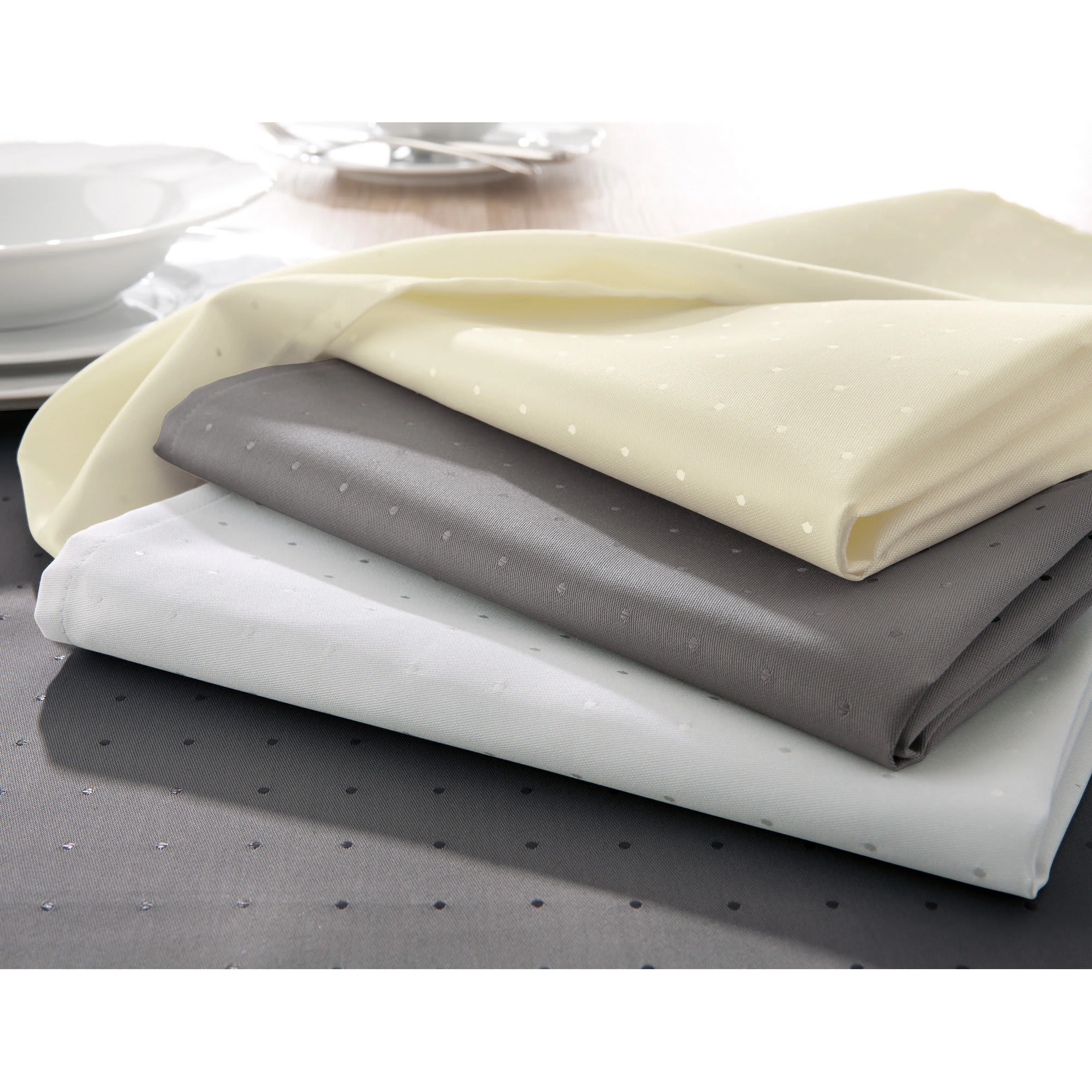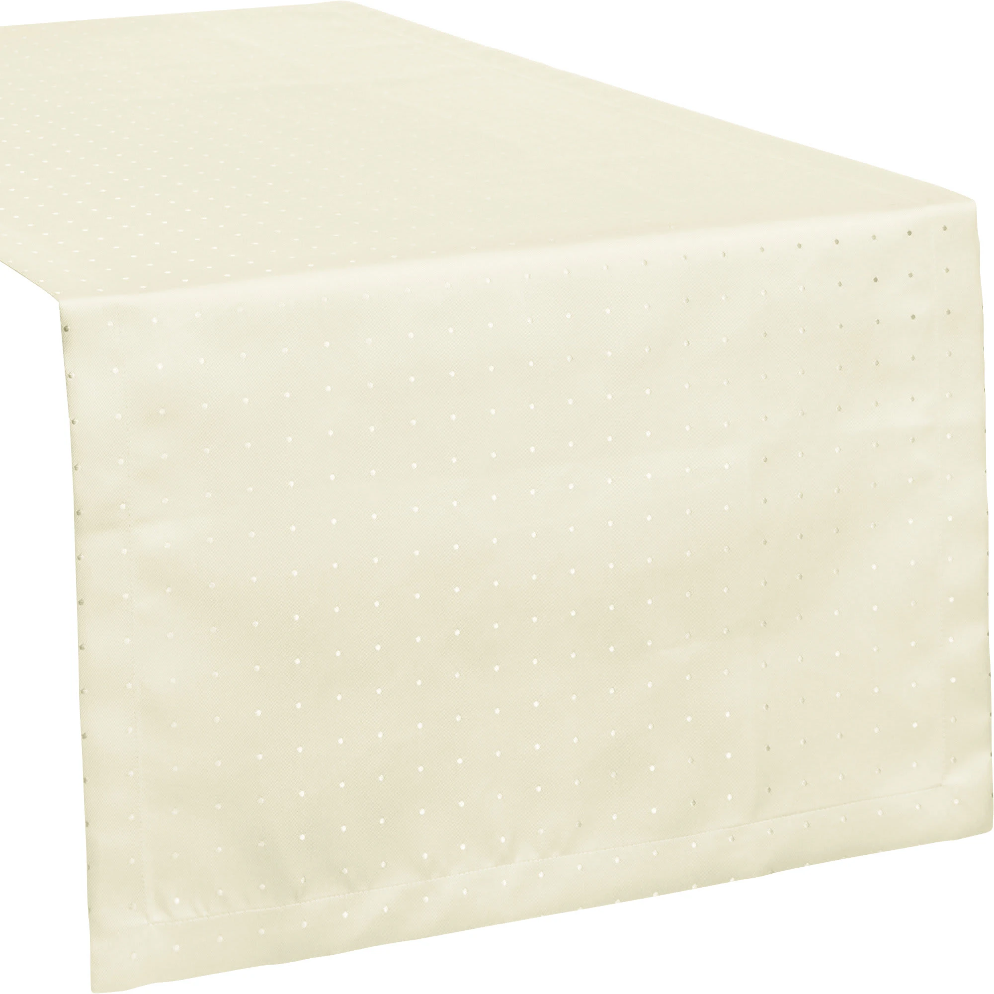 Curt Bauer Damast Tischläufer “Petito”. Zeitlos schön zeigt sich das klassische Punktedessin. Die dicht gewebte, feinfädige Halbzwirnqualität wirkt durch den eleganten Glanz besonders edel. Vielseitig einsetzbar – für die festliche Tafel oder den Kaffeetisch. Sehr pflegeleicht, Flüssigkeiten dringen nicht in die Faser ein, einfach abtupfen, wenn nötig, in der Maschine waschen. Durch linksseitiges Bügeln wird der Fleckschutz nach jeder Wäsche aufgefrischt. Sorgfältig mit Kuvertsaum gearbeitet. Bügelleicht. Aus feinen mercerisierten Garnen.