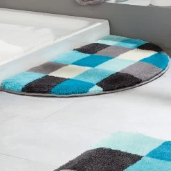 Erwin Müller Duschvorlage ”Kreta” halbrund. Setzen Sie neue Akzente in Ihr Badezimmer! Das farbharmonische grafische Dessin wird zum absoluten Blickfang. Flauschig weich verwöhnt es Ihre Füße. Mit rutschhemmender Beschichtung auf der Rückseite. Auch für Fußbodenheizung geeignet.