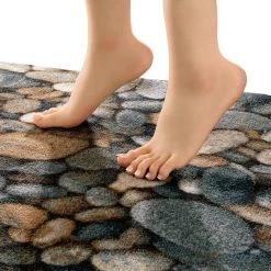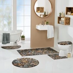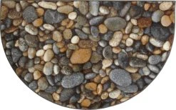 Erwin Müller Duschvorlage ”Steine” halbrund. In Kieselstein-Optik, so verleiht diese Serie Ihrem Ambiente eine natürliche Ausstrahlung. Der dichte Flor verwöhnt Ihre Füße mit Wärme und Kuscheleinheiten. Dank rutschhemmender Beschichtung auf der Unterseite bleibt die Badematte da liegen, wo sie hingehört. Für Fußbodenheizung geeignet.