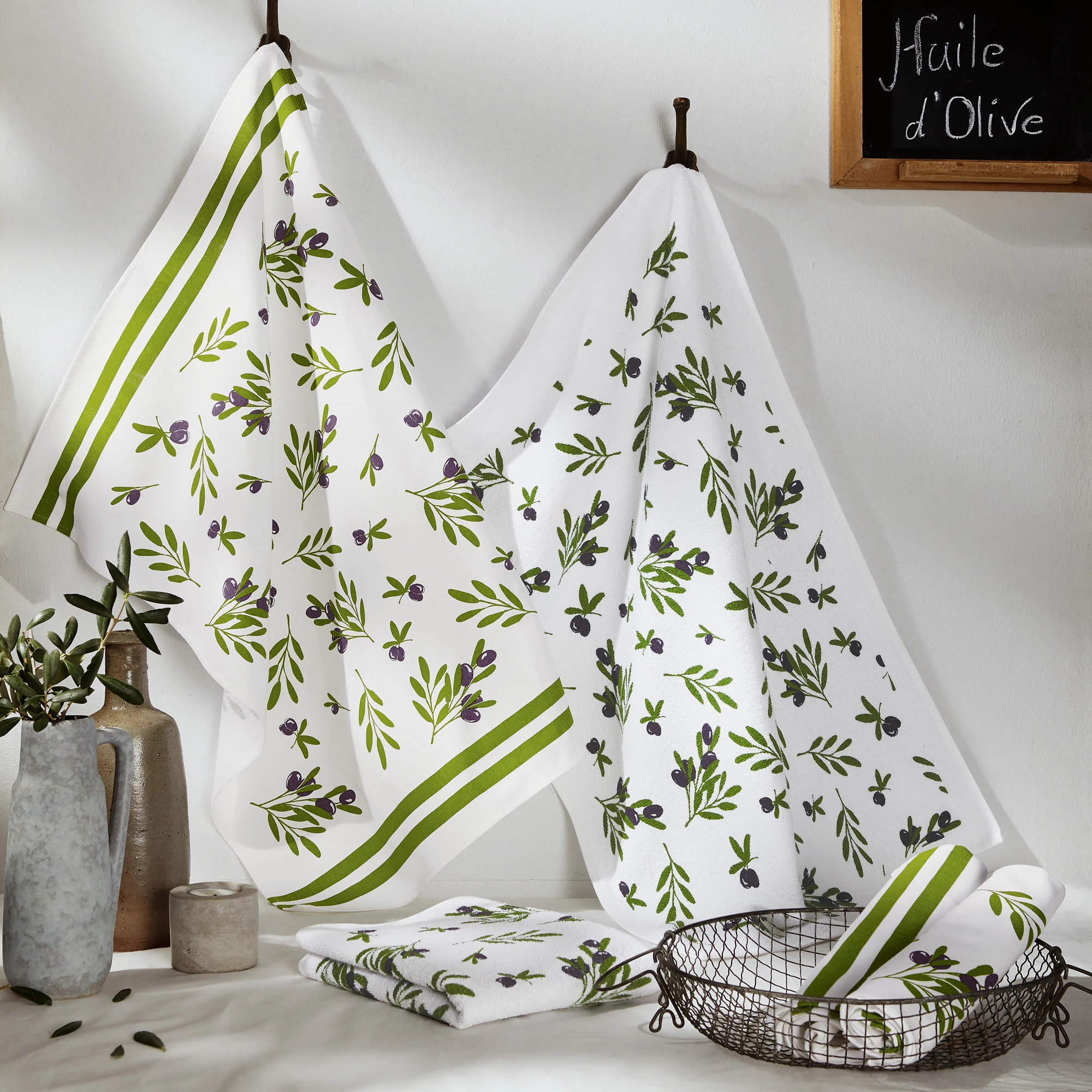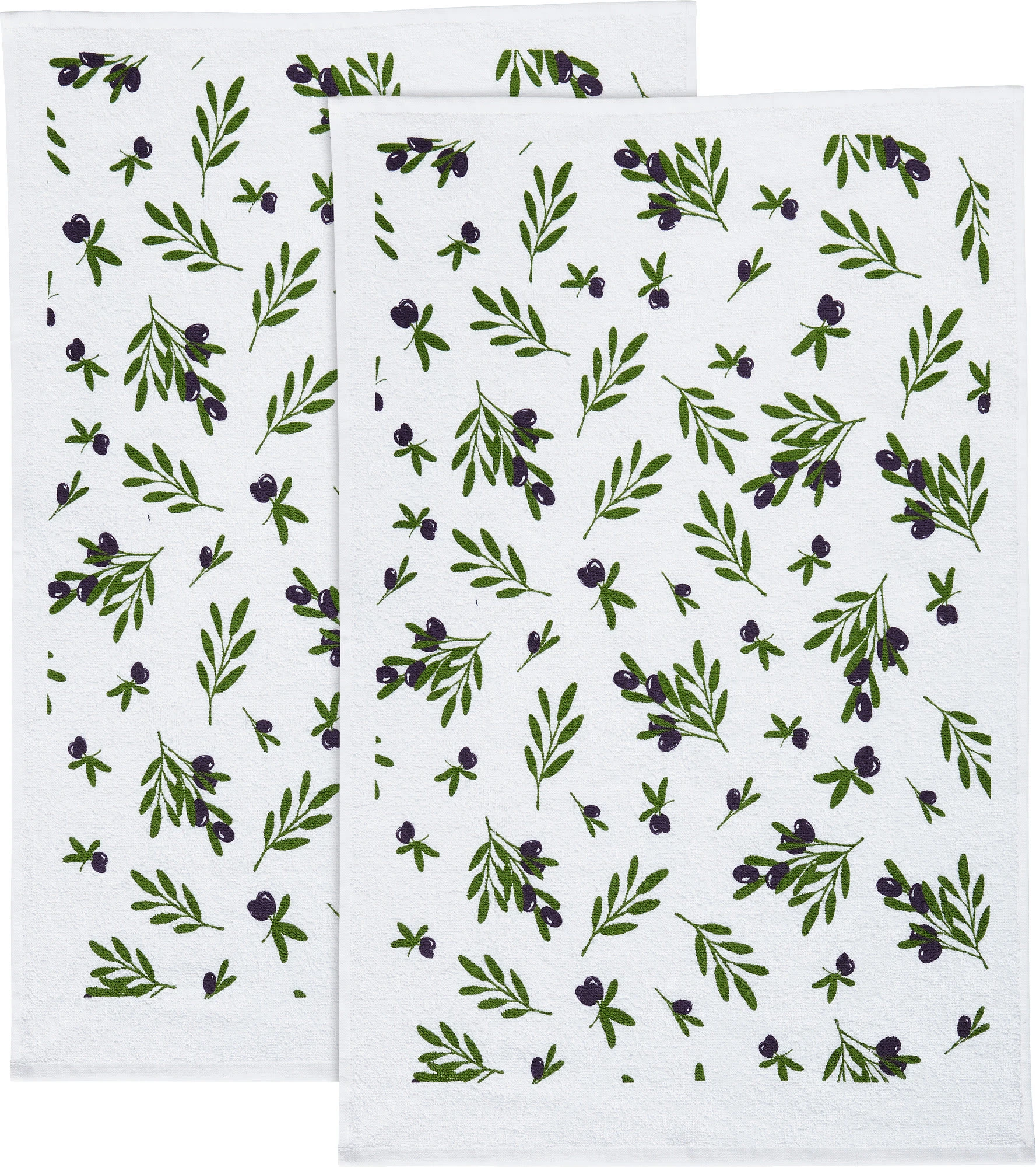 Erwin Müller Frottier-Geschirrtuch im 2er-Pack. Fruchtige Oliven sorgen für mediterranes Flair in Ihrer Küche. Gerne lassen Sie sich von den vielseitigen Tüchern begeistern, denn die praktischen Helfer sind äußerst saugstark, sehr strapazierfähig und bügelfrei. Vorderseite bedruckt.