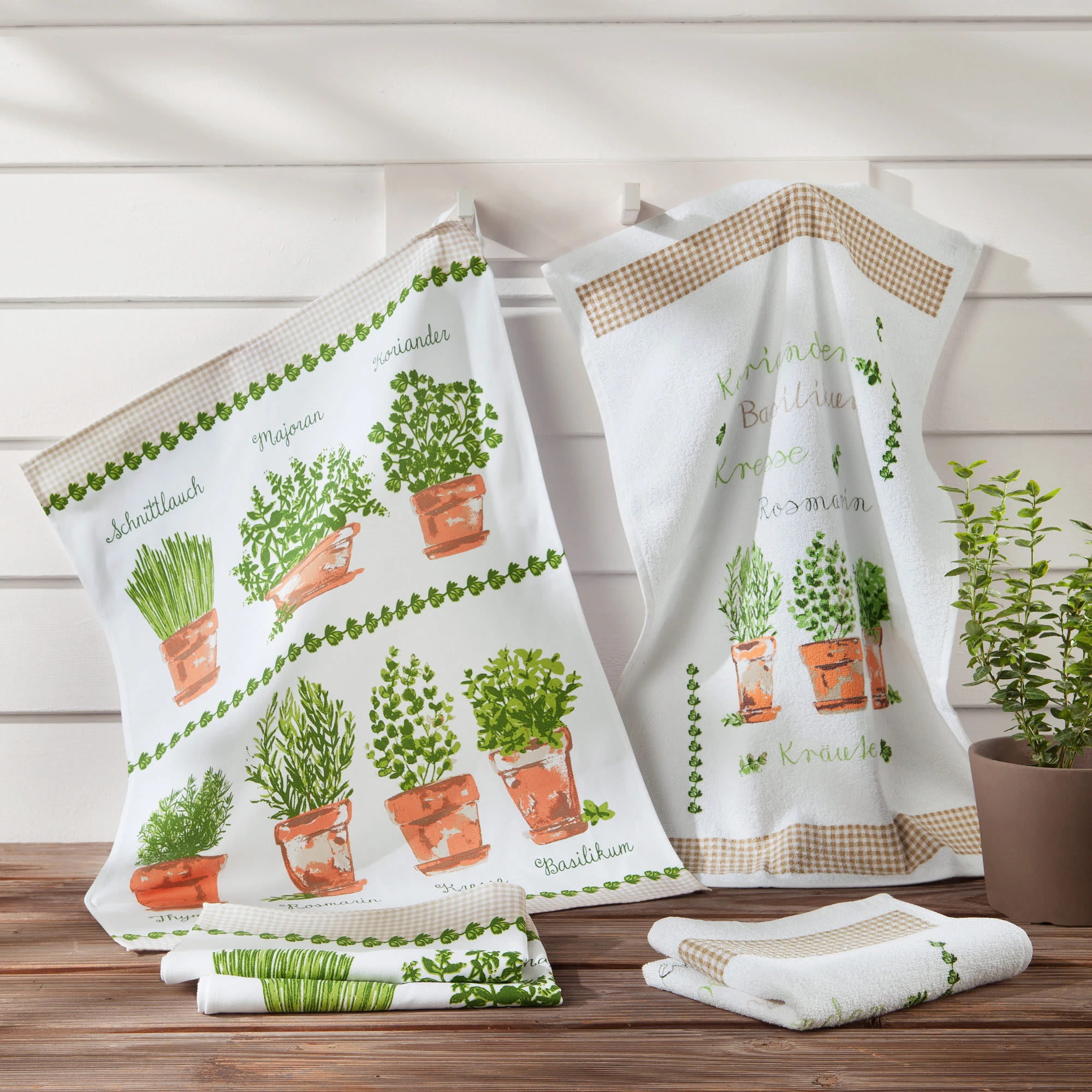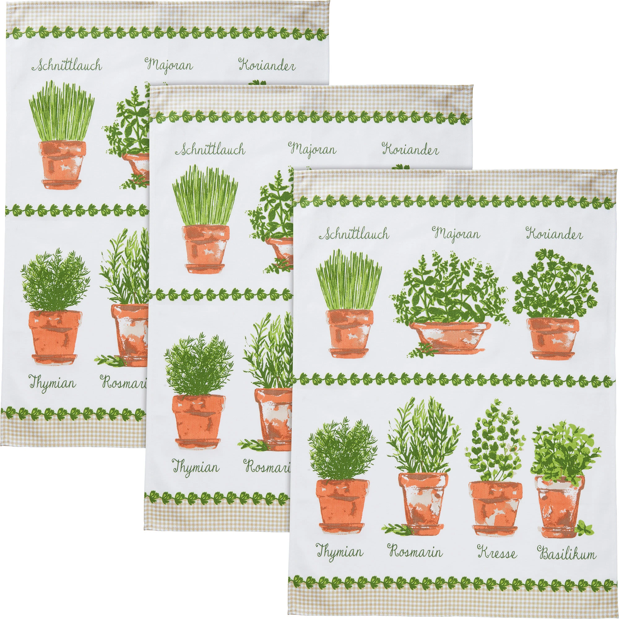 Erwin Müller Baumwoll Geschirrtuch im 3er-Pack. Frische Kräuter inspirieren zu neuen Genüssen. In einer strapazierfähigen, saugstarken Qualität. Vorderseite bedruckt.