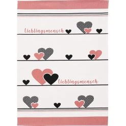Erwin Müller Baumwoll-Geschirrtuch im 4er-Pack. Herzchen und der Schriftzug “Lieblingsmensch” machen aus einem Geschirrtuch eine Liebeserklärung. So macht Abtrocknen gleich mehr Spaß. Strapazierfähige, saugstarke Qualität. Vorderseite bedruckt. Zweifach farblich sortiert.
