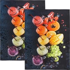 Erwin Müller Baumwoll Geschirrtuch im 2er-Pack. Leckere Smoothies und Früchte sind auf die praktischen Tücher gedruckt und machen Lust auf mehr! Ein appetitlicher Blickfang in Ihrer Küche. Durch den hochwertigen Digitaldruck bleiben die Farben dauerhaft intensiv und brillant. Strapazierstarke, saugkräftige, langlebige Qualität. Vorderseite bedruckt.