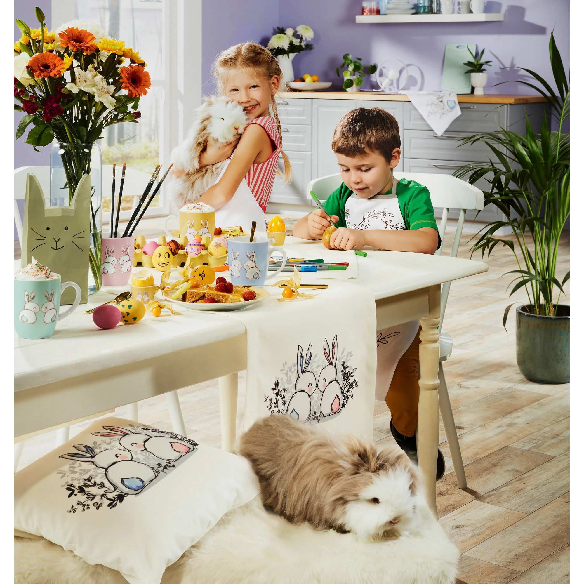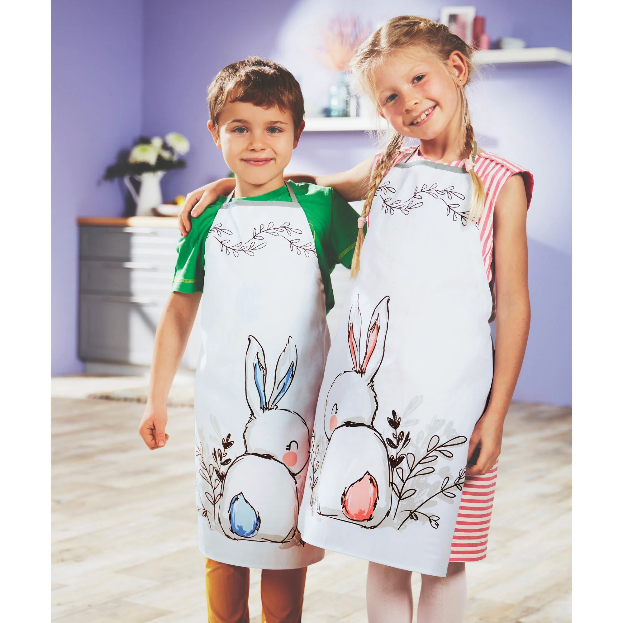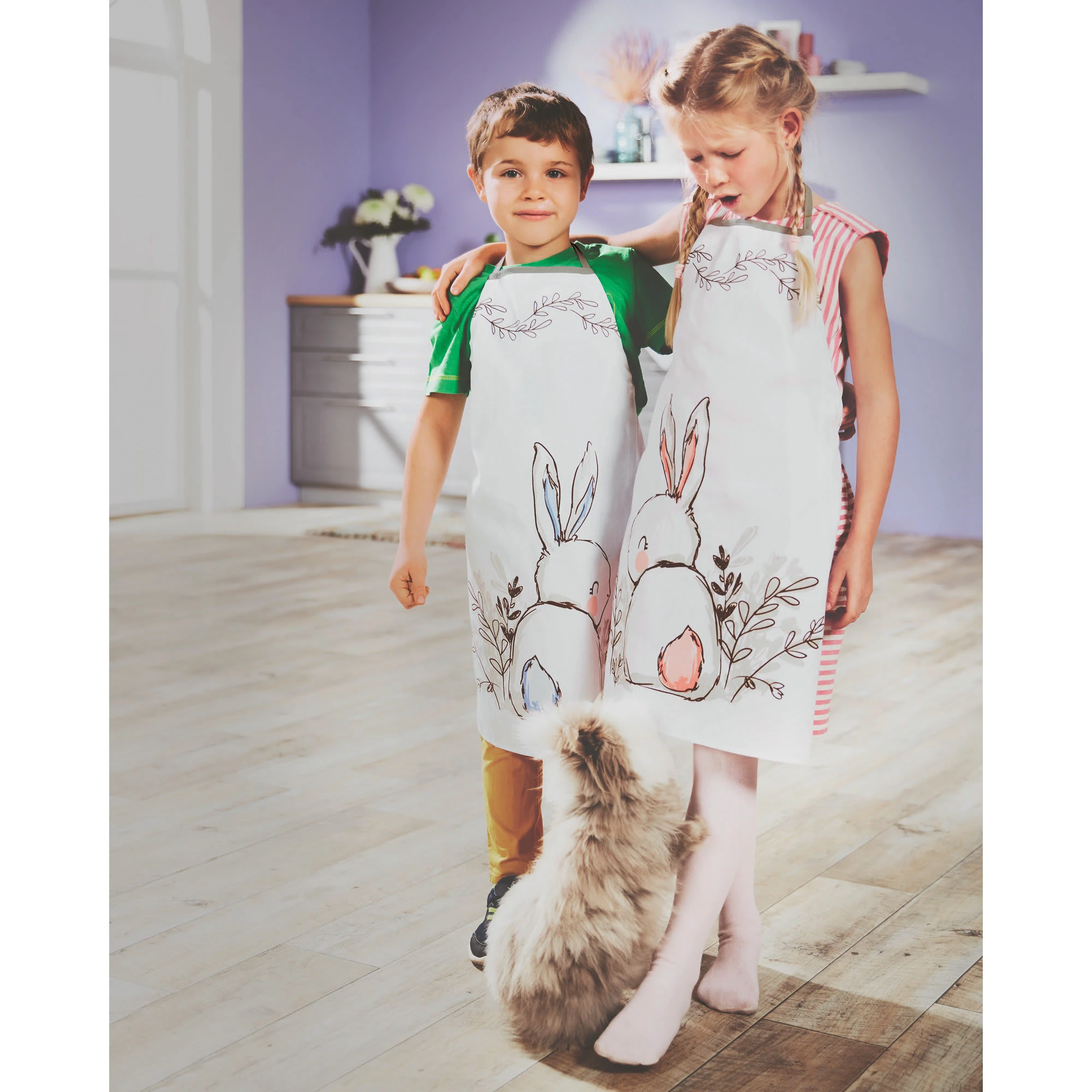 Erwin Müller fleckabweisende Kinderschürze. Der süße Hase sorgt für gute Laune in der Küche. Mit dieser witzigen Kinderschürze wird die Kleidung kleiner Kochgehilfen geschützt. Durch die Fleckschutzausrüstung ist der Stoff unempfindlicher gegen Schmutz und Flecken. Mit längenverstellbarer Halsschlaufe.