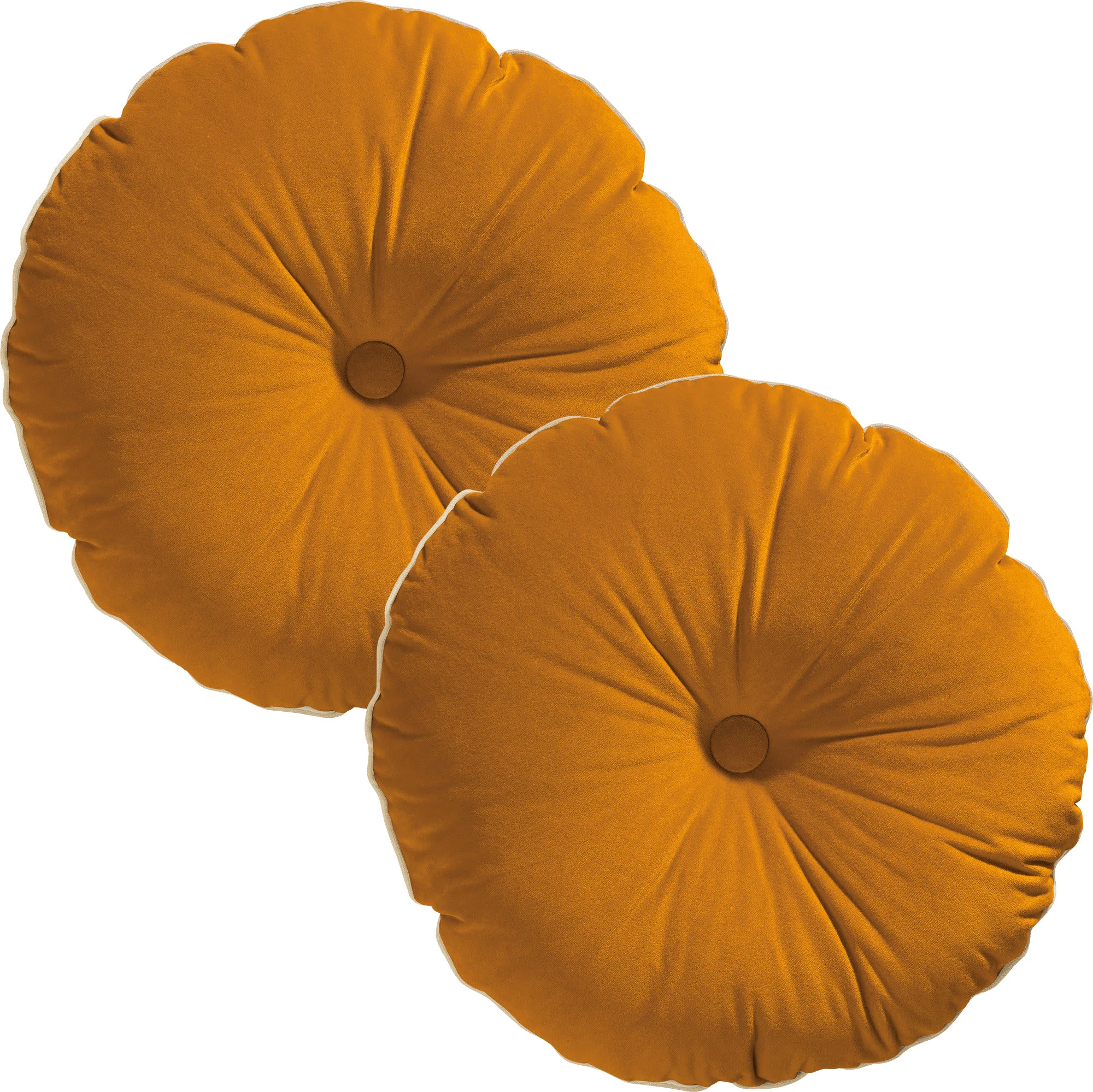 Erwin Müller Kissen “Manchester” rund im 2er-Pack, gefüllt. Setzen Sie mit dem hübschen Wohnaccessoire Farbtupfer in Ihr Ambiente. Aufgewertet wird das runde Kissen von einer beidseitigen Steppung, die auf einer Seite mit einem Zierknopf versehen ist, und dem rundumlaufenden eleganten Keder. Aus samtig-weichem Velours, ein Material, das Sinnlichkeit und Eleganz versprüht.