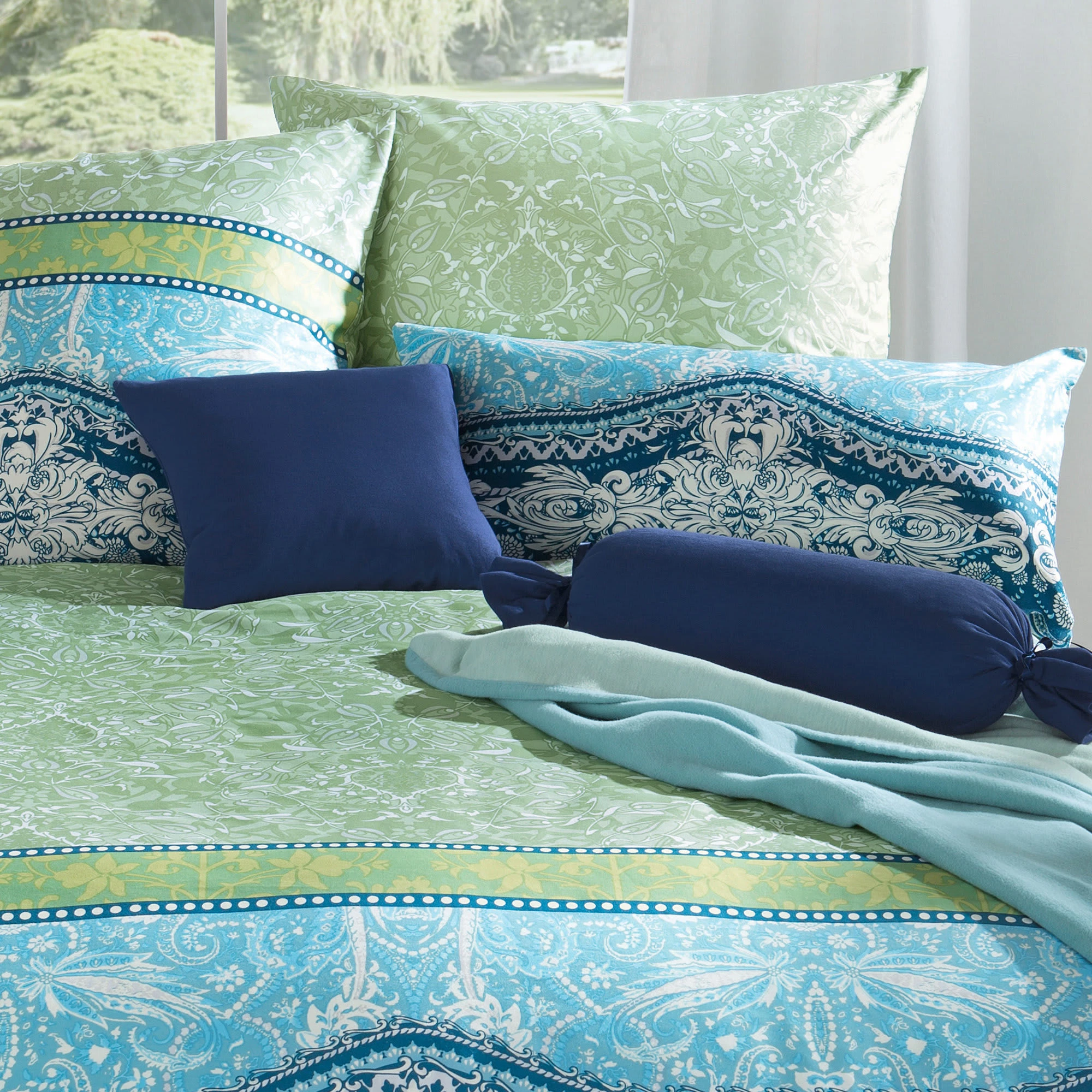 Erwin Müller Mako-Satin Kissenbezug. Ornamente in feinen Farbnuancen verbreiten ein exotisches Flair in Ihrem Schlafambiente. Gerne lassen Sie sich von der seidig weichen, dichtgewebten Qualität verwöhnen. Sie verführt durch ihren edlen Schimmer, fließt sanft und umschmeichelt Ihre Haut. Ein Genuss, der selbst höchsten Ansprüchen gerecht wird. Einfach zu beziehen durch den praktischen Reißverschluss. Aus feinsten, gekämmten und mercerisierten Garnen.