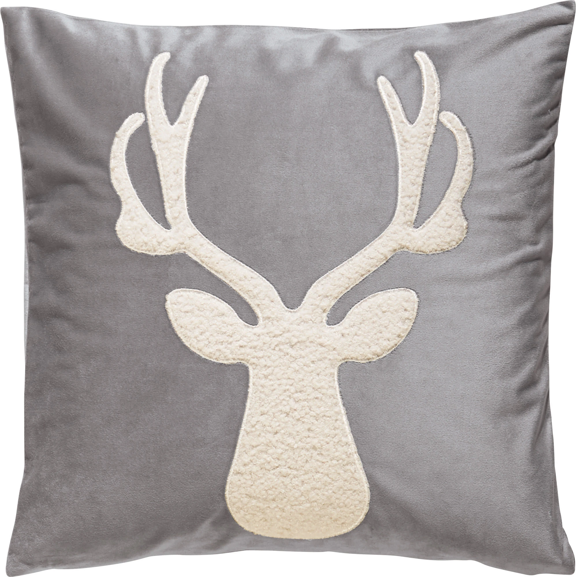 Erwin Müller Kissenhülle “Hirsch”. Der applizierte Hirschkopf schafft einen Spagat vom rustikalen Landhaus-Look bis zum modernen Einrichtungsstil. Er ist ein gemütlicher Blickfang auf Ihrer Couch. Sehr schmeichelnd wirkt der samtig-weiche Stoff aus Microvelours, er verleiht Ihrem Interieur einen schicken, eleganten Touch. Einfaches Be- und Abziehen dank Reißverschluss.
