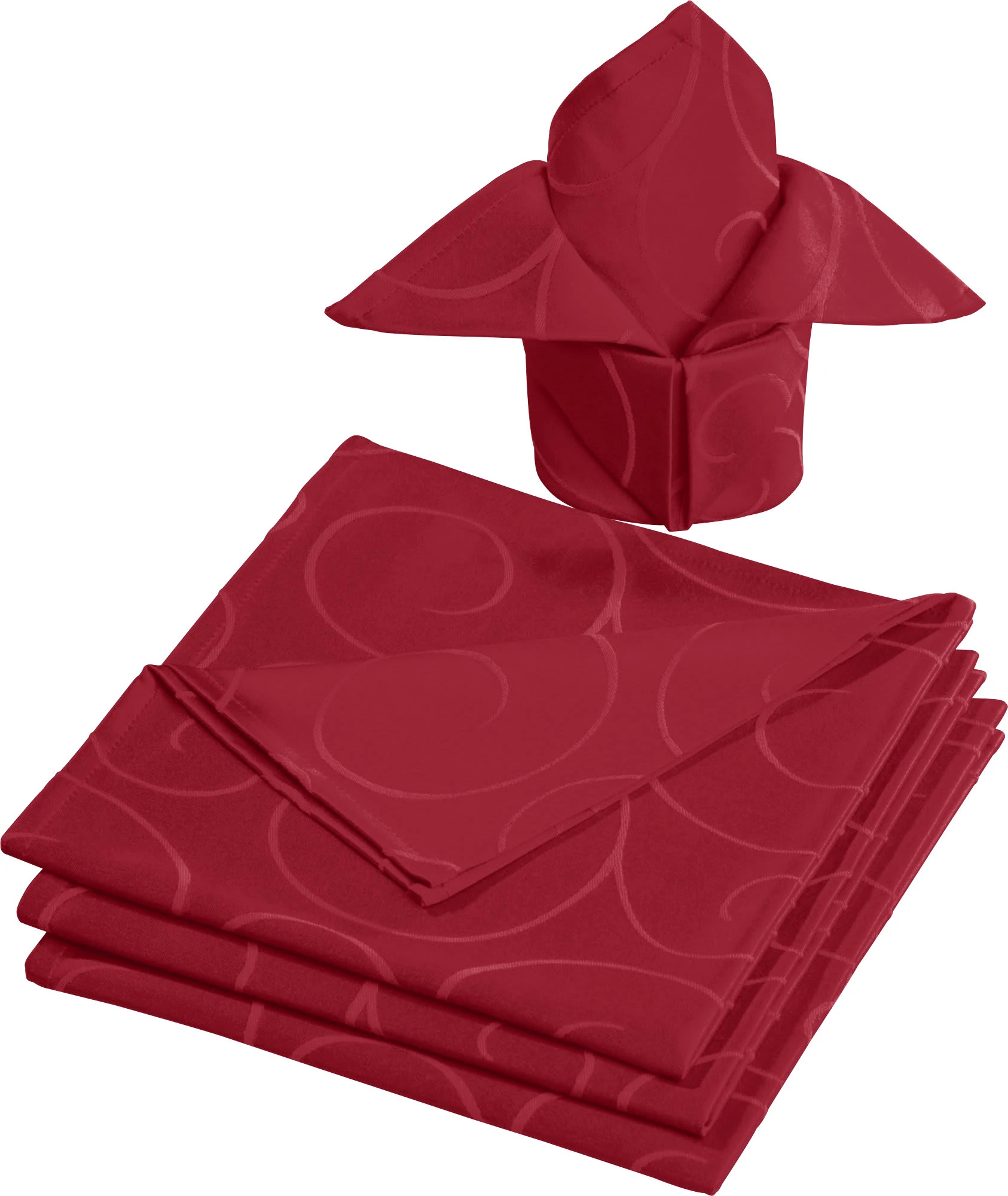 Erwin Müller Damast Servietten “Oberhausen” im 4er-Pack. Zeitlose Eleganz strahlen die eingewebten Ranken aus. Eine schöne, beständige Jacquard-Qualität, die mit ihrem zarten Schimmer für Glanz auf Ihrer Tafel sorgt. Pflege- und bügelleicht dank des Polyester-Anteils.