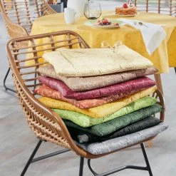 Erwin Müller abwaschbares Stuhlkissen “Essen” mit Bindebändern. Die Serie präsentiert sich im zeitlos schönen Rankenmuster. Ideal im Innen- und geschützten Außenbereich. Dank der wasserundurchlässigen Beschichtung lassen sich Flecken einfach feucht abwischen oder bei Bedarf in der Maschine waschen (keinen Weichspüler verwenden!). Beidseitig nutzbar und durch die Bindebänder ganz einfach zu befestigen. Innen weich gefüllt.