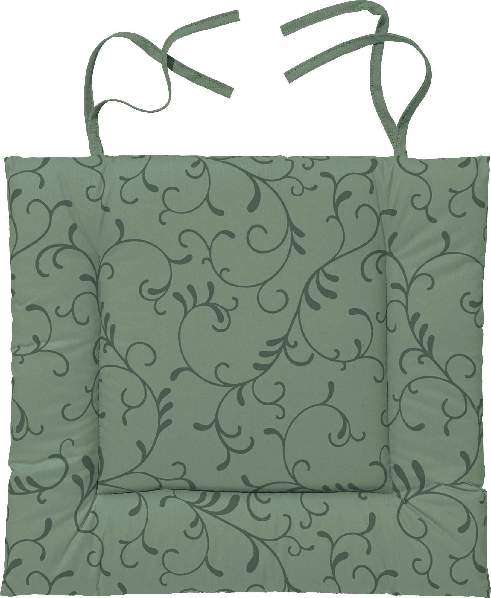 Erwin Müller abwaschbares Stuhlkissen “Essen” mit Bindebändern. Die Serie präsentiert sich im zeitlos schönen Rankenmuster. Ideal im Innen- und geschützten Außenbereich. Dank der wasserundurchlässigen Beschichtung lassen sich Flecken einfach feucht abwischen oder bei Bedarf in der Maschine waschen (keinen Weichspüler verwenden!). Beidseitig nutzbar und durch die Bindebänder ganz einfach zu befestigen. Innen weich gefüllt.