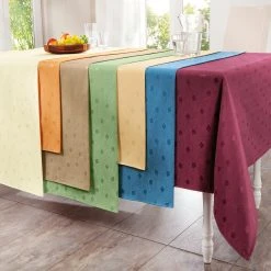 Erwin Müller Tischdecke “Duisburg”. Abwaschbar. Die Acrylat-Beschichtung macht diese Qualität perfekt für den täglichen Gebrauch. Sehr pflegeleicht, einfach feucht abwischen oder wenn nötig in der Maschine waschen. Auf der Rückseite bügelbar. Hochwertiges, leicht glänzendes Jacquard-Gewebe mit textilem Charakter.