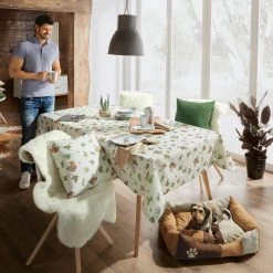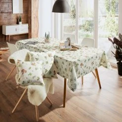 Erwin Müller Tischdecke. Das dezente jacquardgewebte Rankenmuster und die süßen Eichhörnchen harmonieren perfekt. Damit bringen Sie natürliche Impressionen in Ihren Wohnraum. Im hochwertigen Digitaldruck für dauerhafte Farbbrillanz. Sorgfältig mit Kuvertsaum gearbeitet. Robustes, bügelfreies Gewebe, das durch seine Langlebigkeit und die hohe Strapazierfähigkeit überzeugt.