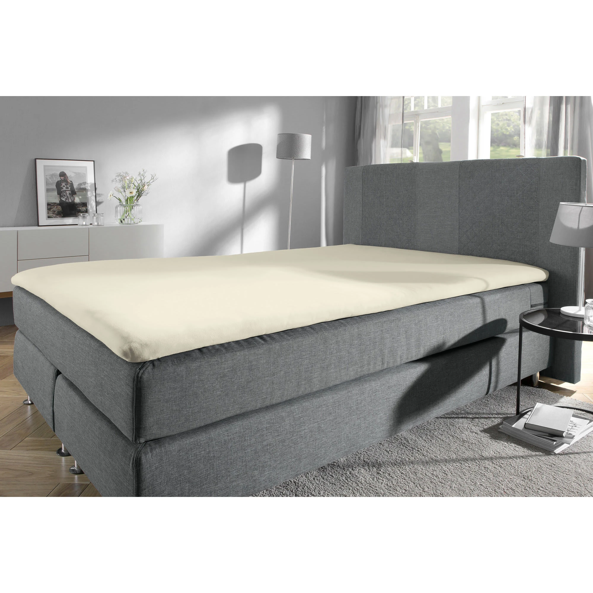 Erwin Müller Elasthan-Jersey-Stretch Topper-Spannbettlaken “Freising”. Lassen Sie sich von der anschmiegsamen Qualität verwöhnen. Die hautfreundliche Baumwolle sorgt für besten Schlafkomfort und ist durch den Elasthan-Anteil besonders elastisch und dehnbar. Hervorragende Passform durch den langlebigen Rundumgummizug. Bügelfrei und mit Antipilling-Ausrüstung versehen.Bitte messen Sie die Höhe Ihrer Matratze. Für Topperhöhe 8 bis 10 cm geeignet.