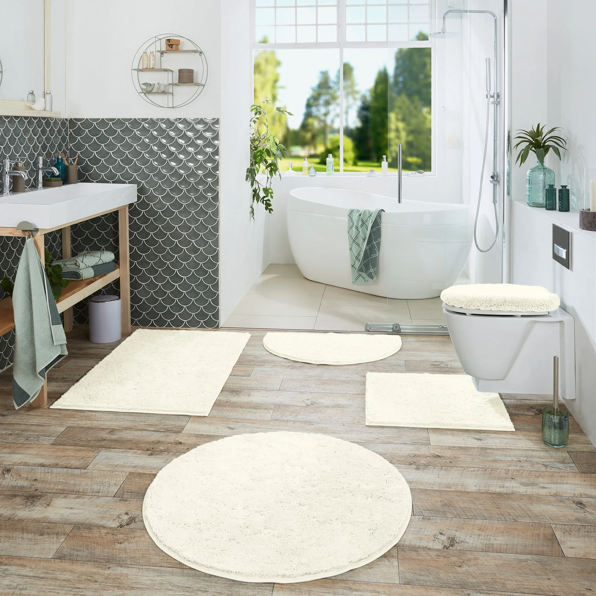 Erwin Müller WC-Umrandung “Ulm”. Spielend fügt sich die einfarbige Serie in Ihr Bad ein und gestaltet es zum Wellness-Tempel. Dabei sorgt der kuschelig-weiche, saugfähige Flor aus Baumwolle für ein gutes Barfuß-Gefühl und höchsten Komfort in der Pflege. Rundum mit Bändchen-Einfassung. Rückseite mit rutschhemmender Beschichtung. Für Fußbodenheizung geeignet.
