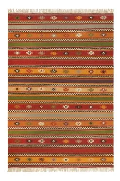 Fernweh? Mit diesem handwebten Teppich beamen Sie sich ratzfatz in eine fremde Kultur. Warme Rot- und Orangetöne und traditionelle Muster bringen einen Hauch Exotik in Ihr Zuhause. Mit einer Florhöhe von 5 mm und einem Gewicht von 1400 g pro Quadratmeter präsentiert sich der Webteppich aus 100% Wolle mit Wollrücken als dekoratives Leichtgewicht. Wir empfehlen eine Anti-Rutsch-Unterlage zu verwenden.