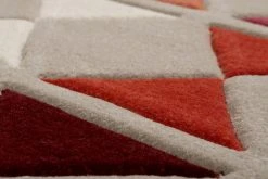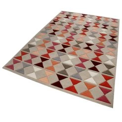 Rauten, Dreiecke und kräftige Farben: Wollteppich “Mahan” aus der aktuellen Kollektion der Lifestylemarke Esprit begeistert dank handgeschnittener Kanten mit coolem 3D-Effekt. Der Markenteppich wird im Handtuft-Verfahren aus 100 Prozent Neuseeland-Wolle gefertigt. Erhältlich in drei Farben und sechs verschiedenen Größen. Florhöhe: 10 mm. Gewicht: 4.200 g pro Quadratmeter. Zertifiziert nach Ökotex Standard 100. Eine rutschhemmende Unterlage wird empfohlen.