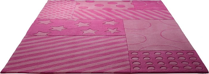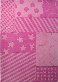 Kräftige Farbe. Streifen, Sterne, Tupfen. Herz, was willst du mehr! Mit diesem Kinderteppich ist Langeweile im Kinderzimmer passé. Handtuft sorgt für Komfort, handgeschnittene Kanten für lebendige Konturen. Wer einmal hier sitzt, mag nie wieder aufstehen. Aus Acryl, Florhöhe: 10 mm. Lieferbar in zwei Trendfarben und fünf unterschiedlichen Größen. Zertifiziert nach Ökotex Standard 100.