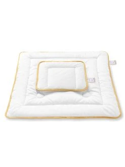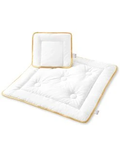 Babyset bestehend aus Babykopfkissen (35x40cm) und Babybettdecke (80×80 cm), gefüllt mit 100 % feinster Bio-Baumwolle, umhüllt mit GOTS zertifizierter Bio-Baumwolle. Kuschelig weich und sanft, sehr pflegeleicht, ideal für den besten Babyschlaf.