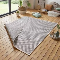 Mit diesem zweiseitig verwendbaren Flachgewebeteppich bringen Sie Abwechslung in Ihre Wohnung. Einfach umdrehen und schon haben Sie eine andere Ansicht dieses modernen Webteppichs. Die Sisal-Optik wirkt, als wäre der Teppich aus Naturfasern gewebt, besteht aber aus 100% Polypropylen. Die Verarbeitung ist gewohnt hochwertig und der Wendeteppich eignet sich sowohl für Garten, Terrasse und Balkon, als auch für alle Zimmer im Innenbereich.