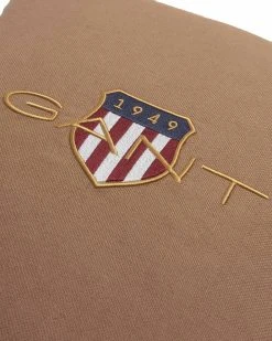 Kissenhülle in Preppy-Charme von der Marke GANT. Aus schwerem Leinen-Baumwoll-Gewebe mit Wappen-Logo Stickerei. Verdeckter Reißverschluss und Paspelierung.