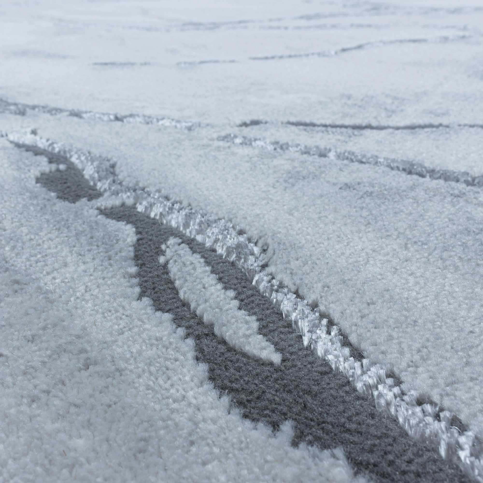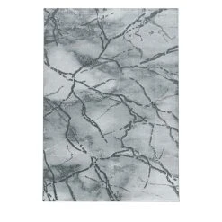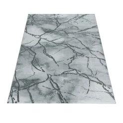 Dieser schöne Designerteppich besticht mit seinem marmorfarbenen Hintergrund