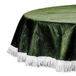Gartentischdecke aus hochwertigen Weichschaum mit optisch ansprechenden weißen Fransen umnäht.