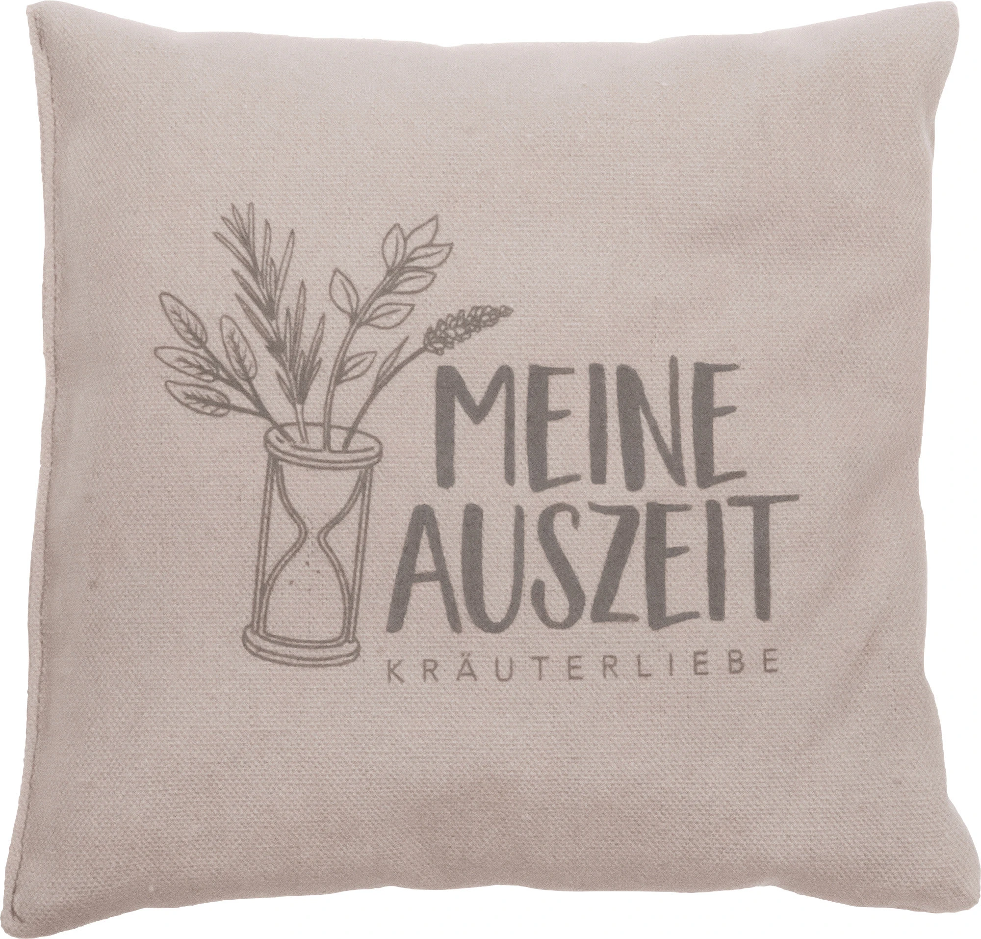 Herbalind Kräuterkissen “Auszeit”. Holen Sie sich die Kraft der Natur ins Haus. Dieses Entspannungskissen hat einen robusten Baumwoll-Canvas-Bezug, der mit einem Schriftzug bedruckt ist. Seine Kräuterfüllung verbreitet ein aromatisches Dufterlebnis in Ihrem Ambiente. Denn zusätzlich zu Schafschurwolle und Dinkelspelz enthält es eine Kräutermischung, bestehend ausThymian, Salbei, Lavendel, Pfefferminz, Eukalyptus, Hopfenzapfen, Kamille, Anis, Fenchel und Steinkleekraut. Diese kann durch ihre beruhigende Wirkung beim Relaxen oder Einschlafen hilfreich sein. Dazu wird das Kissen direkt auf die Brust oder auf das Kopfkissen gelegt. Durch die Körperwärme können sich die ätherischen Öle der Kräuter besonders gut entfalten und auf natürliche Weise positiv auf Ihr Wohlbefinden einwirken. Das Kissen darf nicht erhitzt werden!