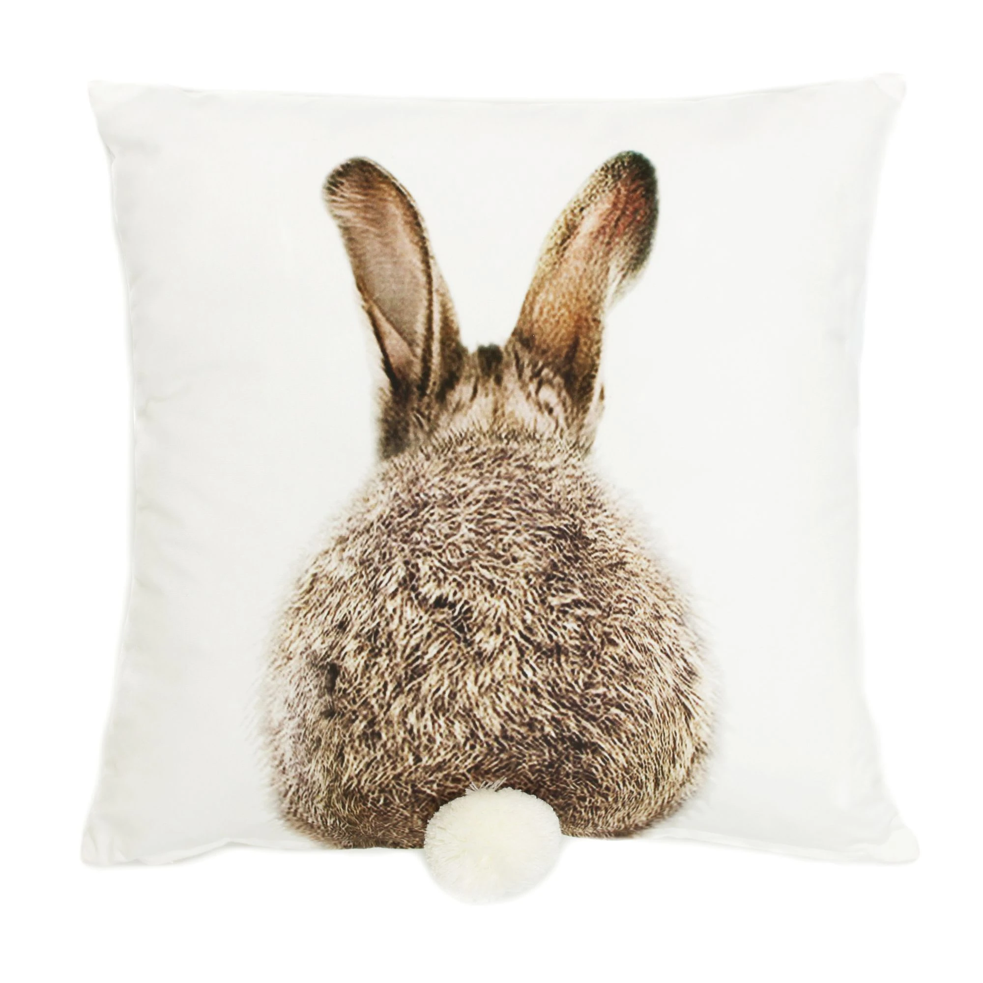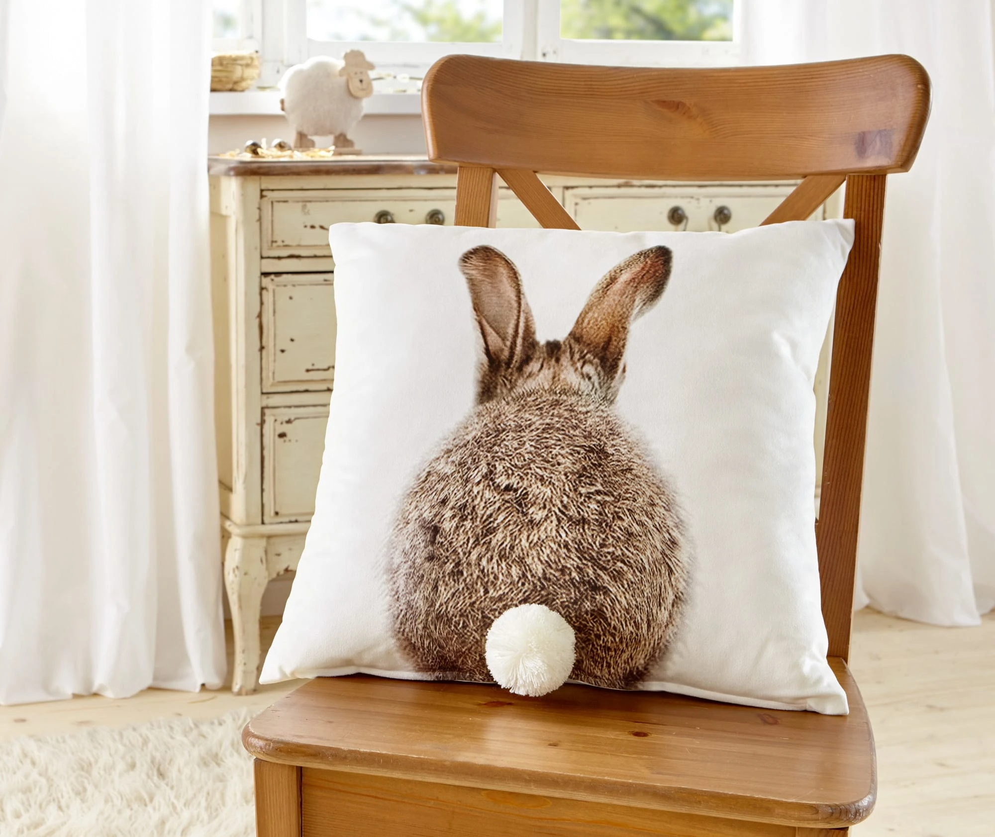 Kissenhülle , niedliches Hasendesign mit witzigem Pompom-Schwänzchen, weißer Grundstoff, versteckt eingearbeiteter Reißverschluss, 100% Polyester