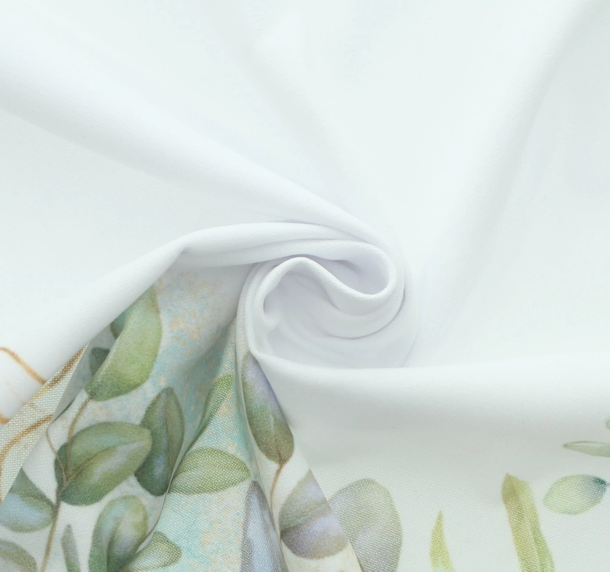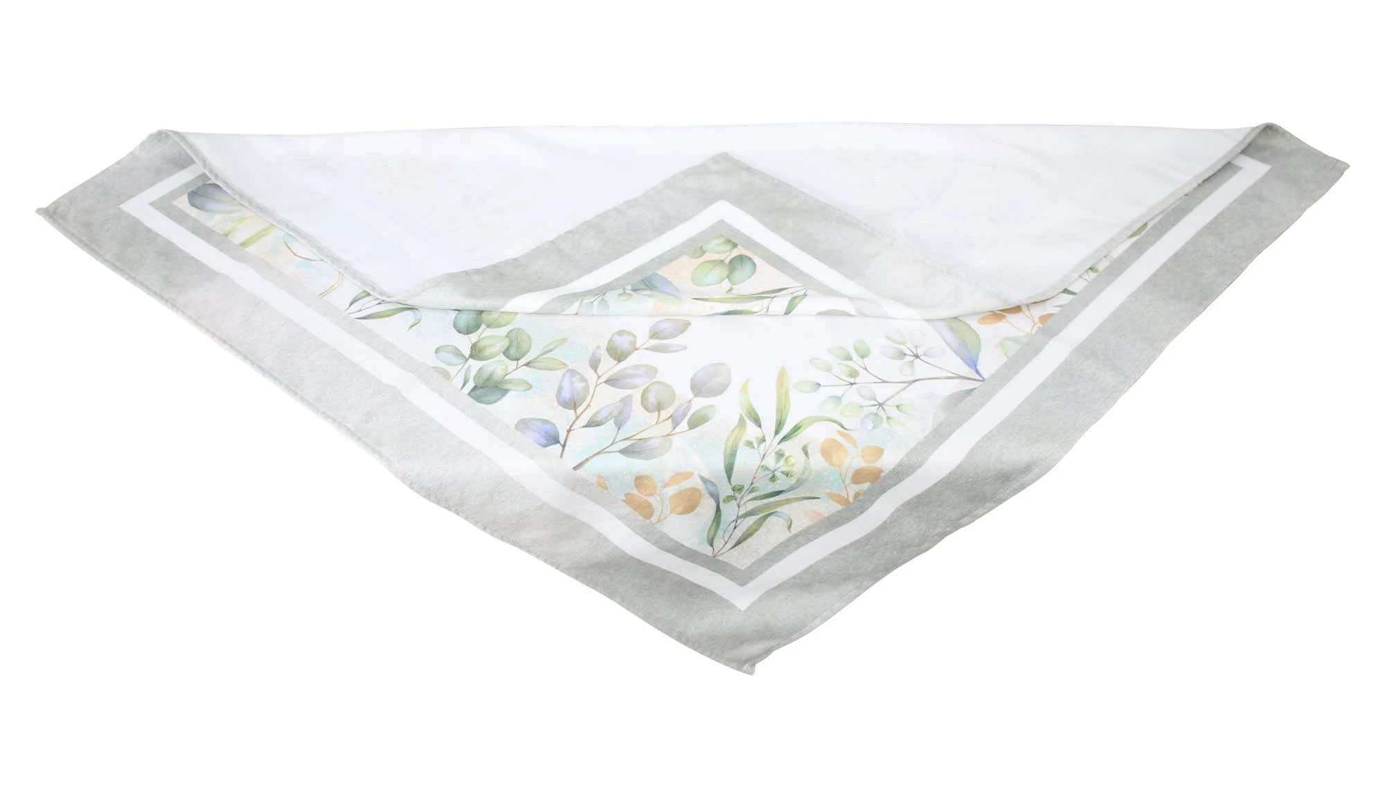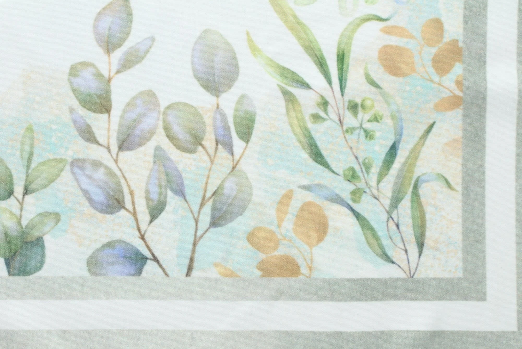 weicher Grundstoff in Weiß, mediterranes Olivenmotiv in harmonischen Farben