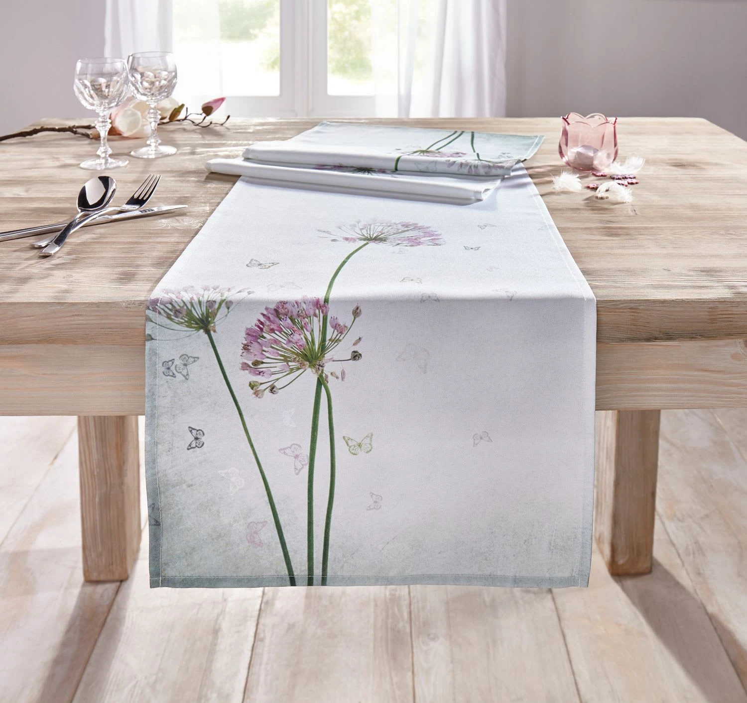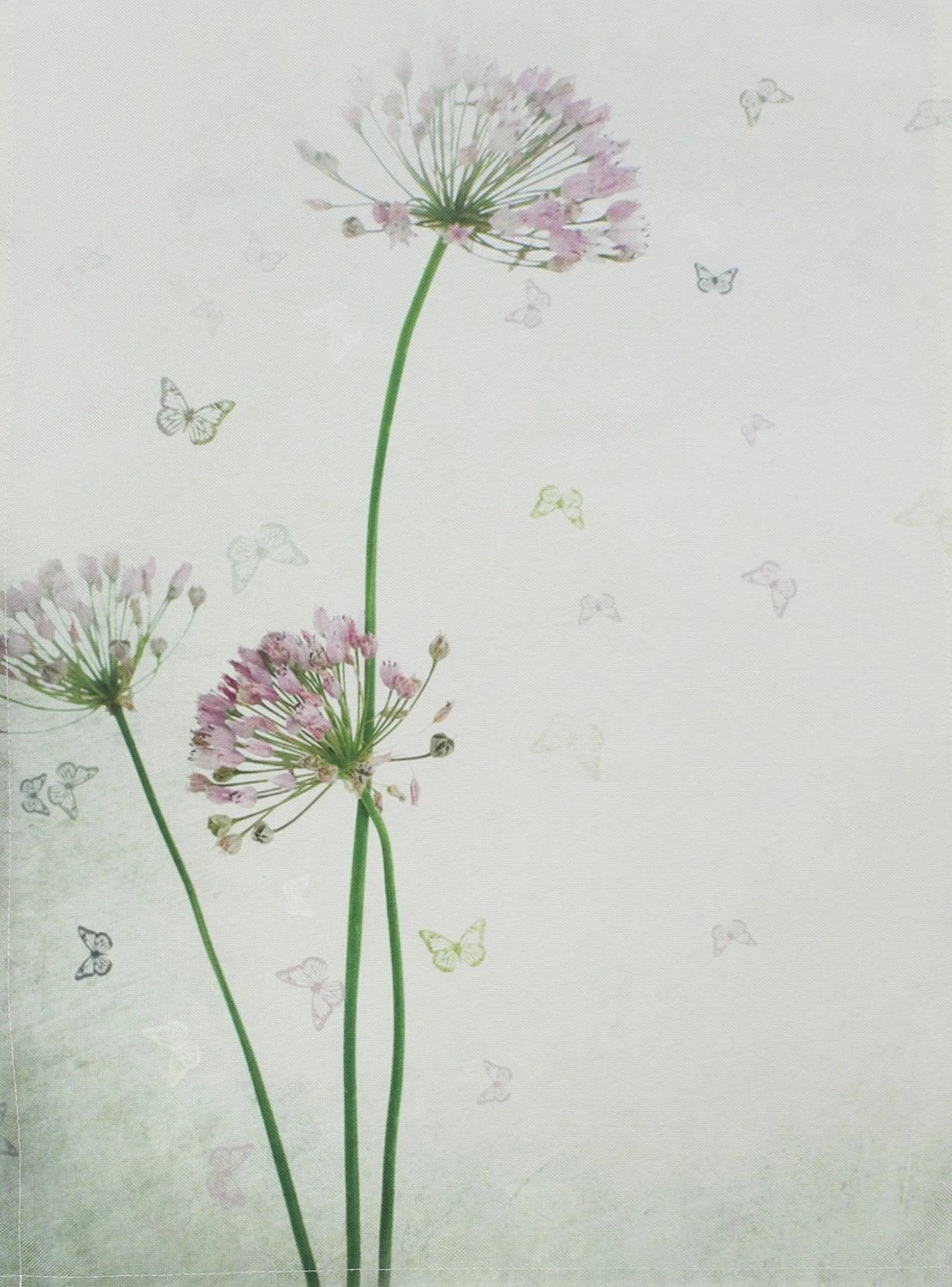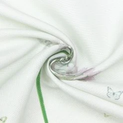 weißer Grundstoff mit hübschem Frühlingsmotiv und zartem Farbverlauf, 100% Polyester