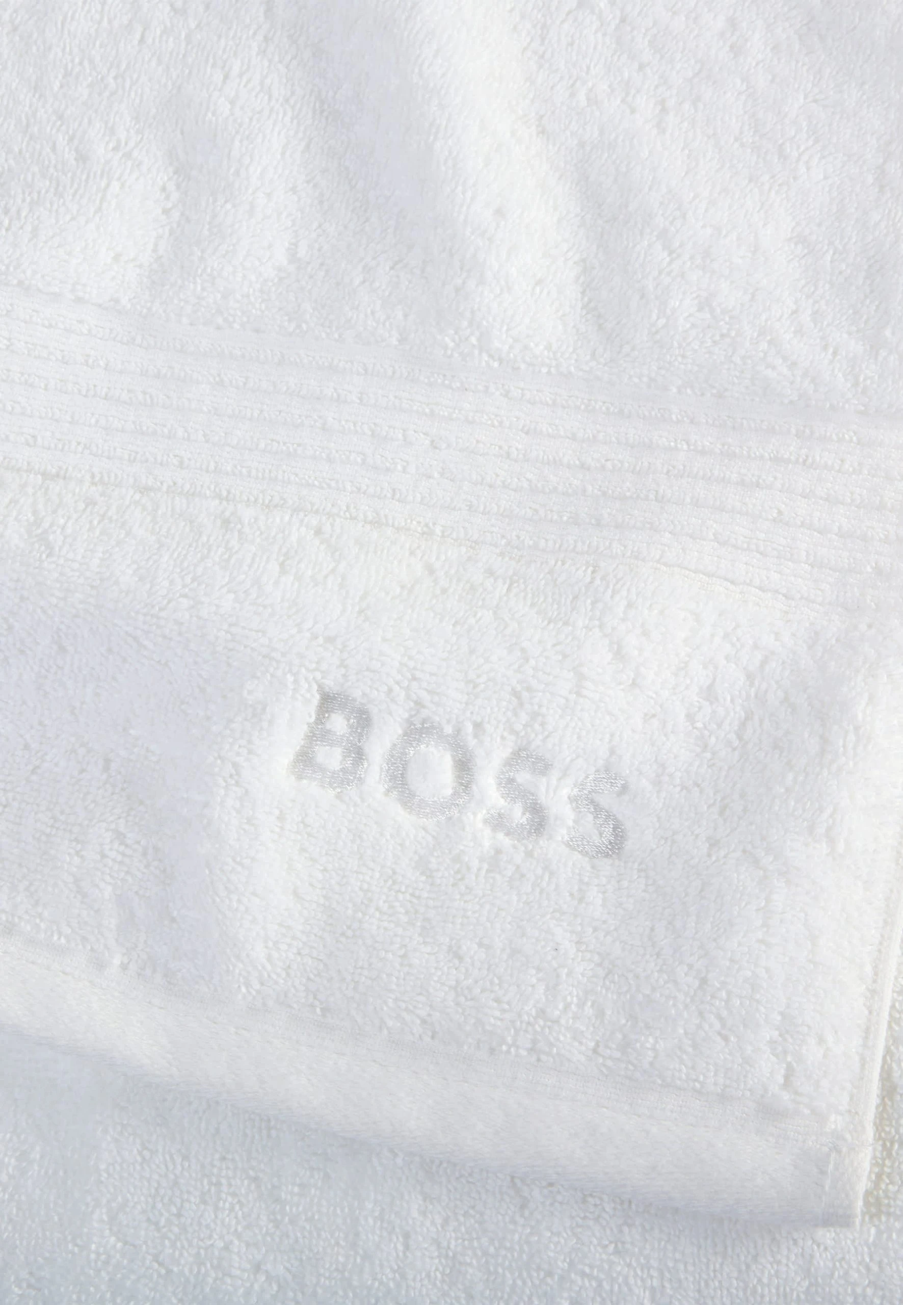 Edles BOSS Handtuch LOFT aus gekämmter ägäischer Baumwolle. Das Bad-Accessoire bleibt dauerhaft weich und saugfähig. Es präsentiert sich mit einer puristischen Bordüre sowie einer Ton in Ton gehaltenen Logo-Stickerei. Setzen Sie auf dieses luxuriöse Set für einen modernen Look in Ihrem Badezimmer.