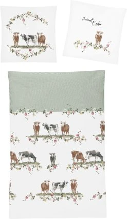 Irisette Mako-Satin Bettwäsche. Mit den originellen Kühen bringen Sie den gemütlichen Landhaus-Look in Ihr Zuhause. Noch mehr Landlust verbreitet der Kissenbezug zum Wenden. Lassen Sie sich von der Eleganz und der hervorragenden Verarbeitung begeistern. Das feinfädige, streichelzarte Gewebe aus feinster Baumwolle schimmert edel und umgibt Sie mit einem traumhaften Schlafklima. Es ist temperaturausgleichend, atmungsaktiv und schafft ein sanftes Hautgefühl. Bügelleicht und schnell bezogen dank praktischem Reißverschluss.