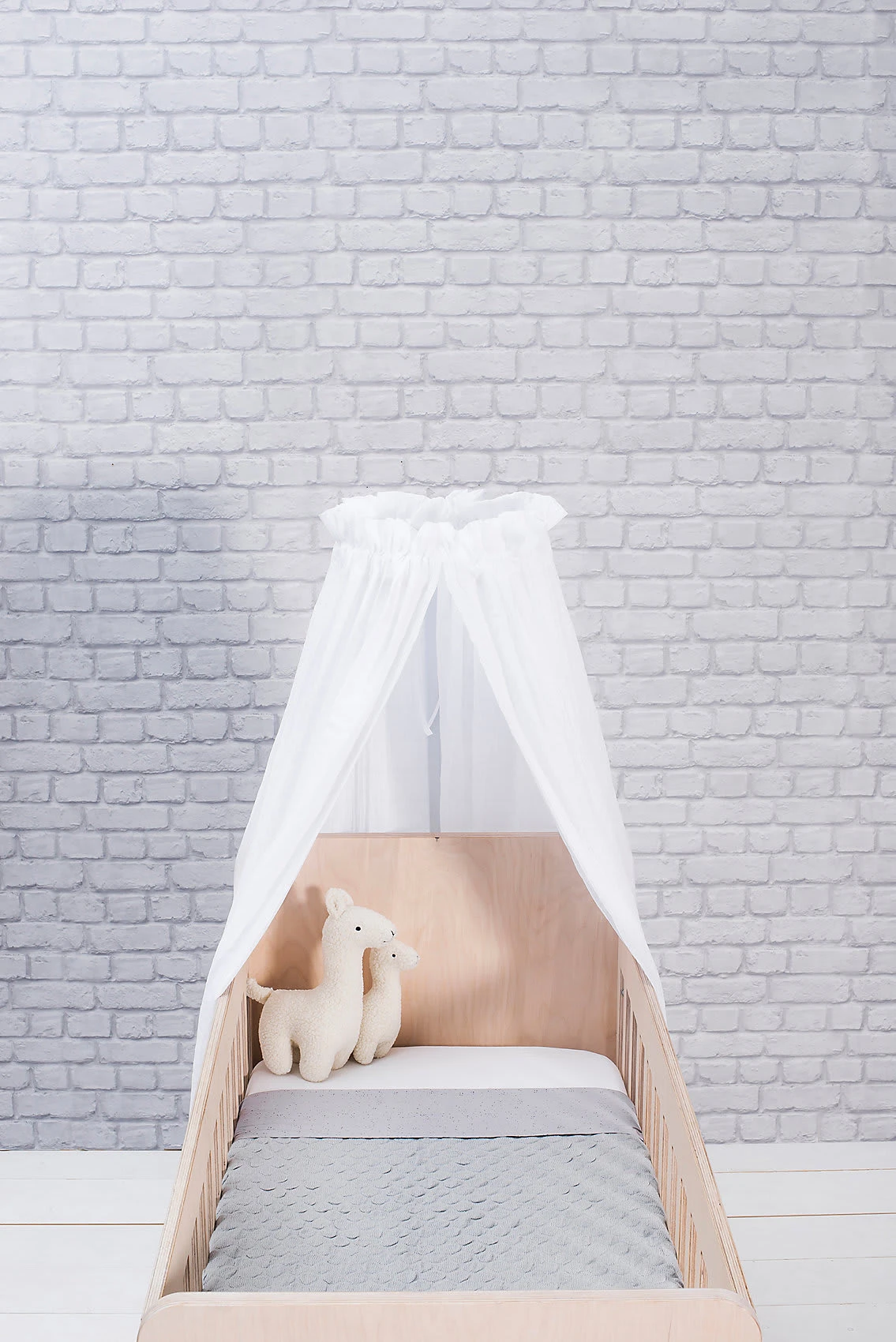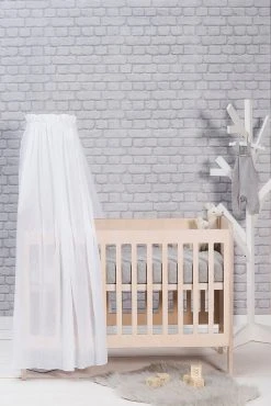 Dieser Betthimmel der Marke jollein ist ein hübscher, gemütlicher Hingucker im Kinderzimmer.
