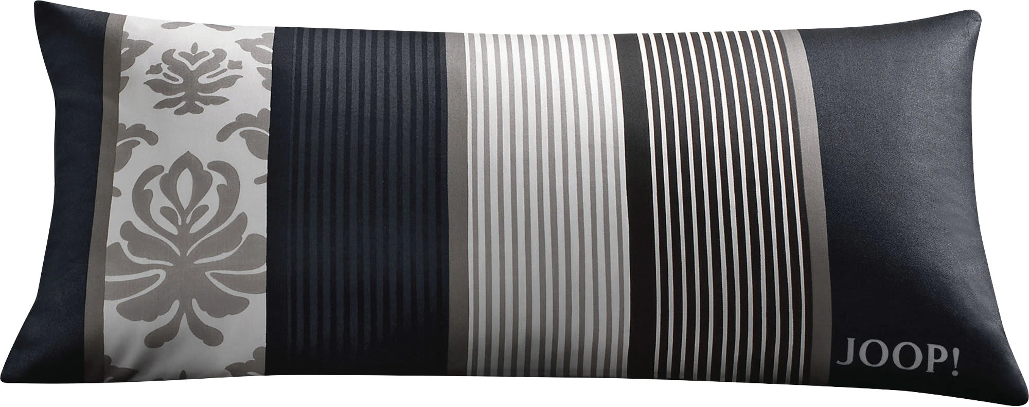 Joop! Mako-Satin Kissenbezug “Ornament Stripe”. Durch den raffinierten Mix aus frischen Streifen und stilvollen Mustern wird der Kissenbezug mit aufgedrucktem Joop!-Schriftzug perfekt in Szene gesetzt. Heraus kommt ein exklusives Dessin, das Ihrem Schlafzimmer eine elegante Ausstrahlung verleiht. Eine Wohltat ist die seidig anmutende Luxus- Qualität: dies erkennt man am geschmeidigen Griff und dem edlen Glanz. Genießen Sie das streichelzarte, weich fließende Gewebe aus feinsten gekämmten und mercerisierten Garnen auf Ihrer Haut. Einfach zu beziehen dank Reißverschluss.