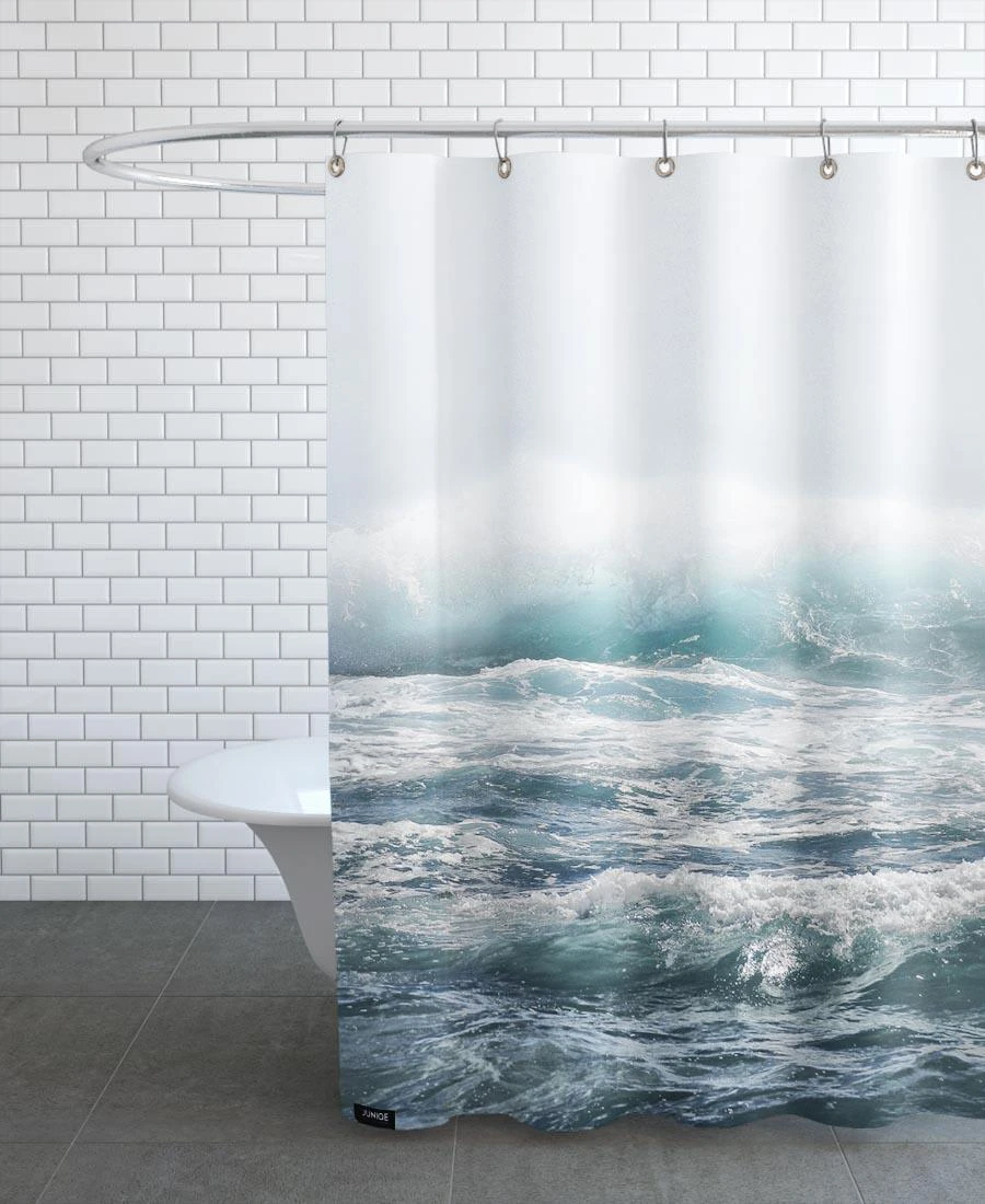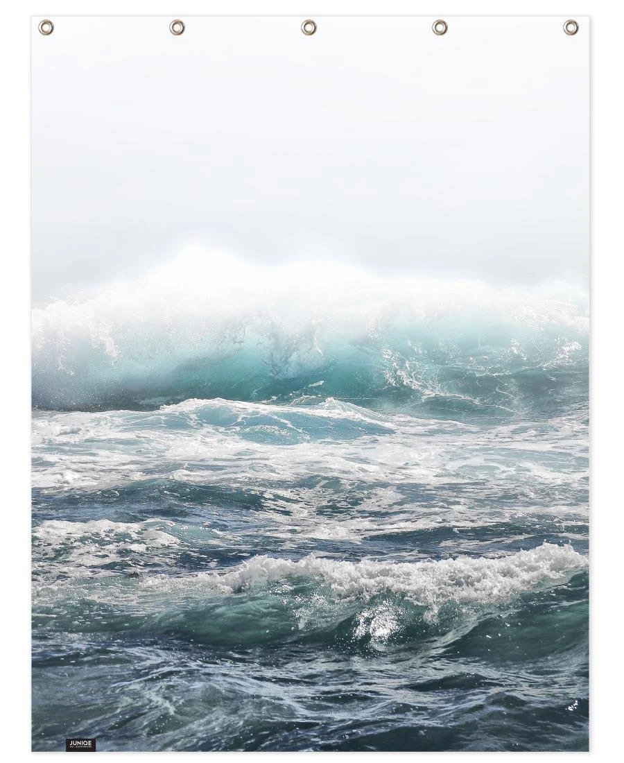 Wasserabweisender Duschvorhang aus Polyester mit einseitigem Motivdruck. Fadenvernäht. Mit vernickelten, rostfreien Metallösen. Aufhängung (Duschvorhangringe) nicht inklusive.