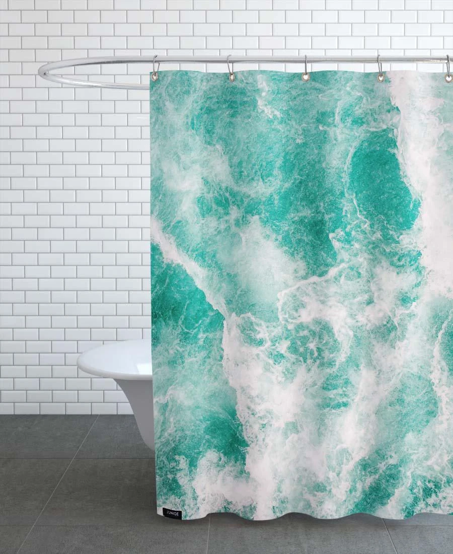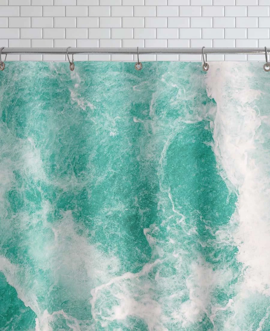 Wasserabweisender Duschvorhang aus Polyester mit einseitigem Motivdruck. Fadenvernäht. Mit vernickelten, rostfreien Metallösen. Aufhängung (Duschvorhangringe) nicht inklusive.