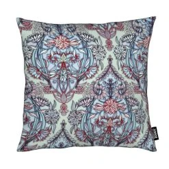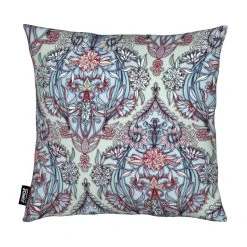 Quadratischer Kissenbezug mit All-Over-Druck und Reißverschluss. Bezug aus weichem, allergikergeeignetem Material. Füllkissen aus Kunstfaser. Versteckter Reißverschluss.