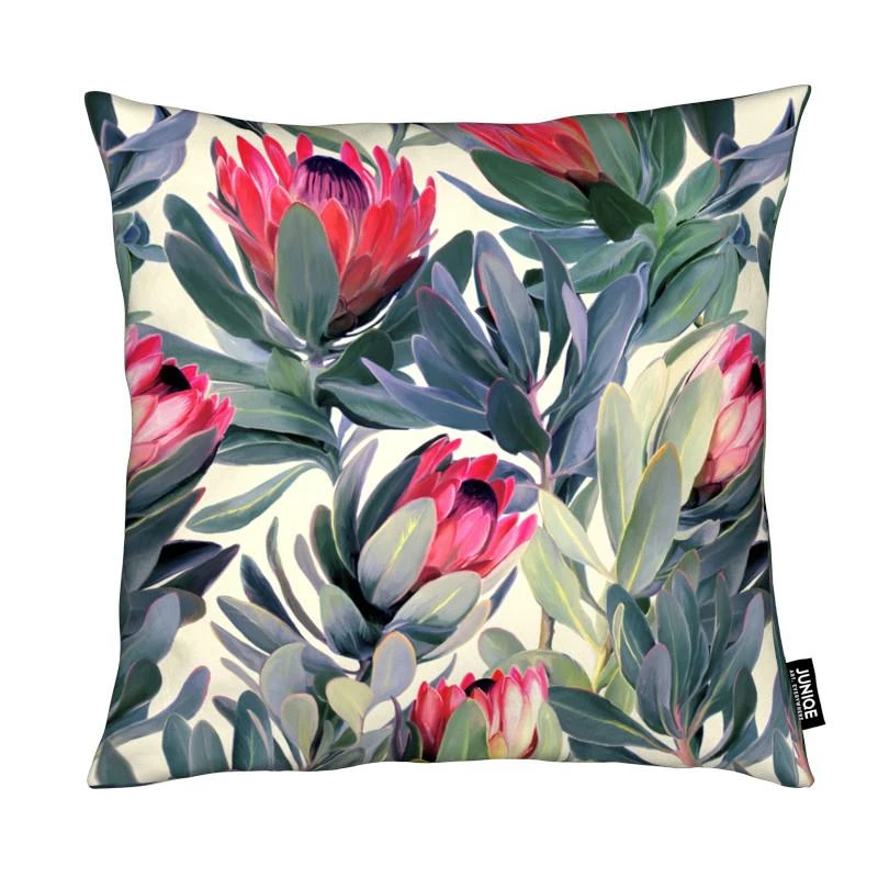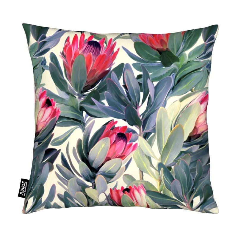 Quadratischer Kissenbezug mit All-Over-Druck und Reißverschluss. Bezug aus weichem, allergikergeeignetem Material. Füllkissen aus Kunstfaser. Versteckter Reißverschluss.