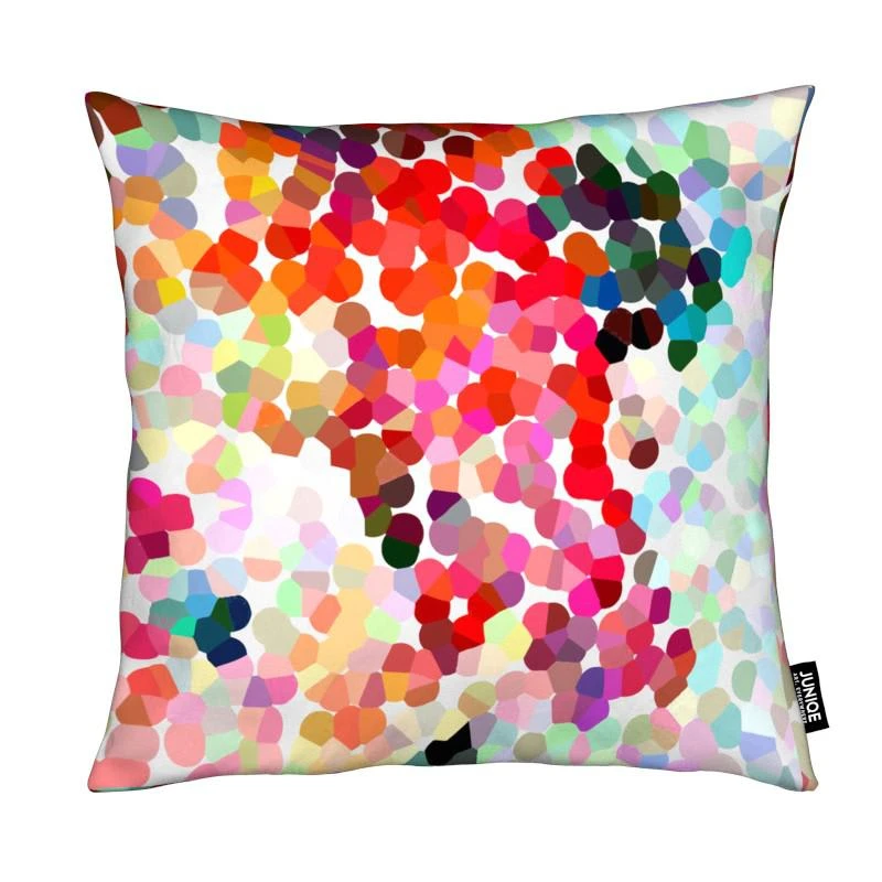 Quadratischer Kissenbezug mit All-Over-Druck und Reißverschluss. Bezug aus weichem, allergikergeeignetem Material. Füllkissen aus Kunstfaser. Versteckter Reißverschluss.