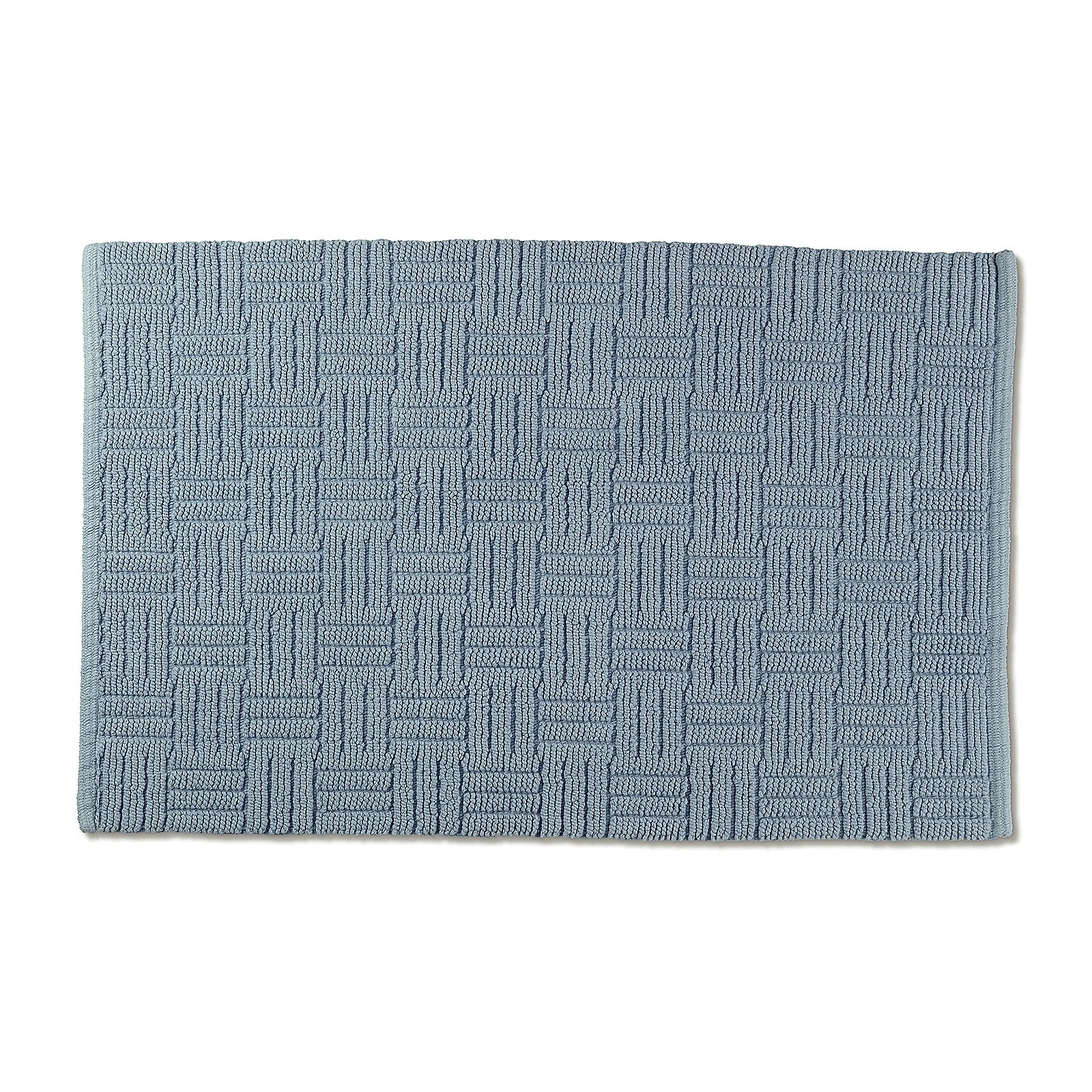 Ein schlichter Badteppich mit spezieller Flecht-Optik und niedriger Florhöhe: die Badematte Leana. Die Serie Leana besticht durch eine hochwertige Verarbeitung und besteht aus 100% Baumwolle. Sie eignet sich auch bei Fußbodenheizungen und verfügt über eine rutschhemmende Unterseite. Florhöhe 5mm. Die Badvorleger Leana erhalten Sie in folgenden Trend-Farben: - Schneeweiß- Felsgrau- Lachsrot- Frostblau- Polarblau- Granitgrau Jede der vorgenannten Farben verfügt über 3 unterschiedliche Größen, sodass Sie die für Ihr Badezimmer ideale Größe finden können. - 65 x 55 cm- 80 x 50 cm- 100 x 60 cm