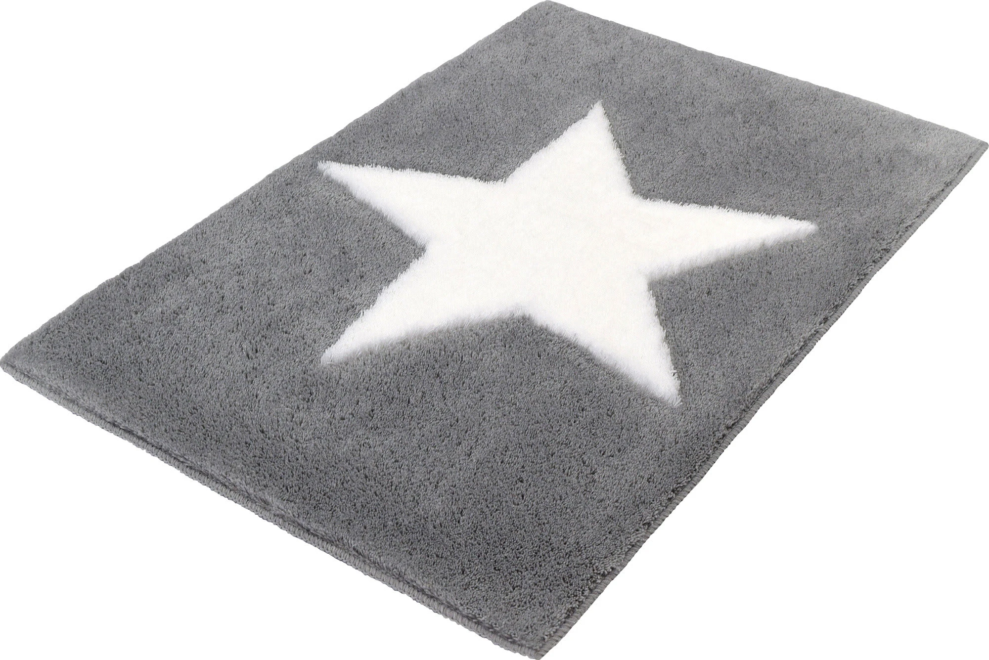 Kleine Wolke Badematte “Sigma”. Verwandeln Sie Ihr Bad in eine herrliche Wohlfühloase. Durch den effektvollen Hoch-Tief-Effekt wird der schöne Stern perfekt in Szene gesetzt. Gerne lassen Sie von dem hohen dichten Flor Ihre Füße mit Wärme und Kuscheleinheiten verwöhnen. Dank rutschhemmender Beschichtung auf der Unterseite bleibt die Badematte da liegen, wo sie hingehört. Für Fußbodenheizung geeignet.
