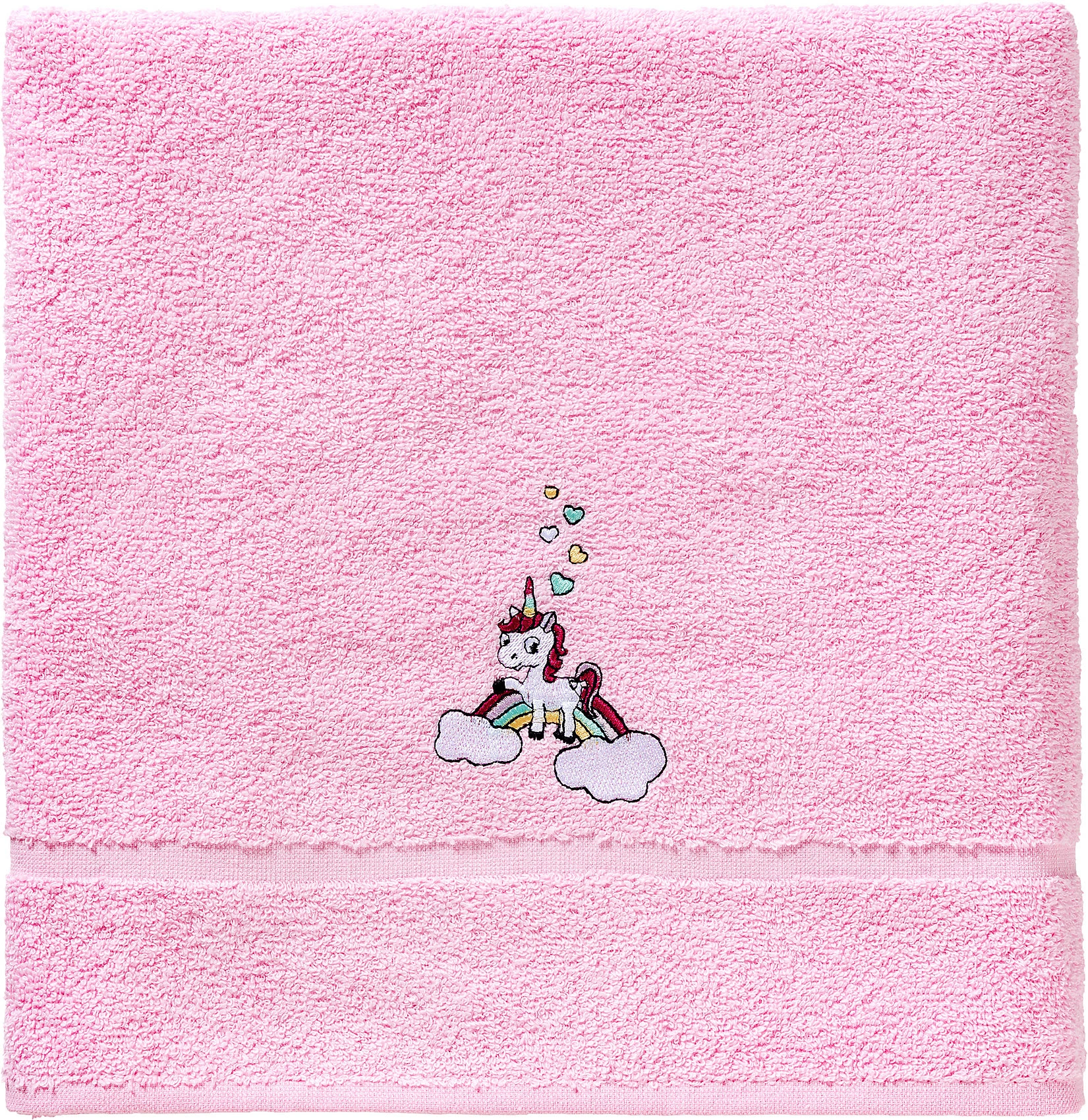 Das bestickte Badetuch ist nicht nur eine optische Bereicherung für Ihr Badezimmer, auch Ihr Kind wird sich über das kuschelige Walkfrottier-Badetuch mit niedlicher Einhorn-Stickerei freuen.