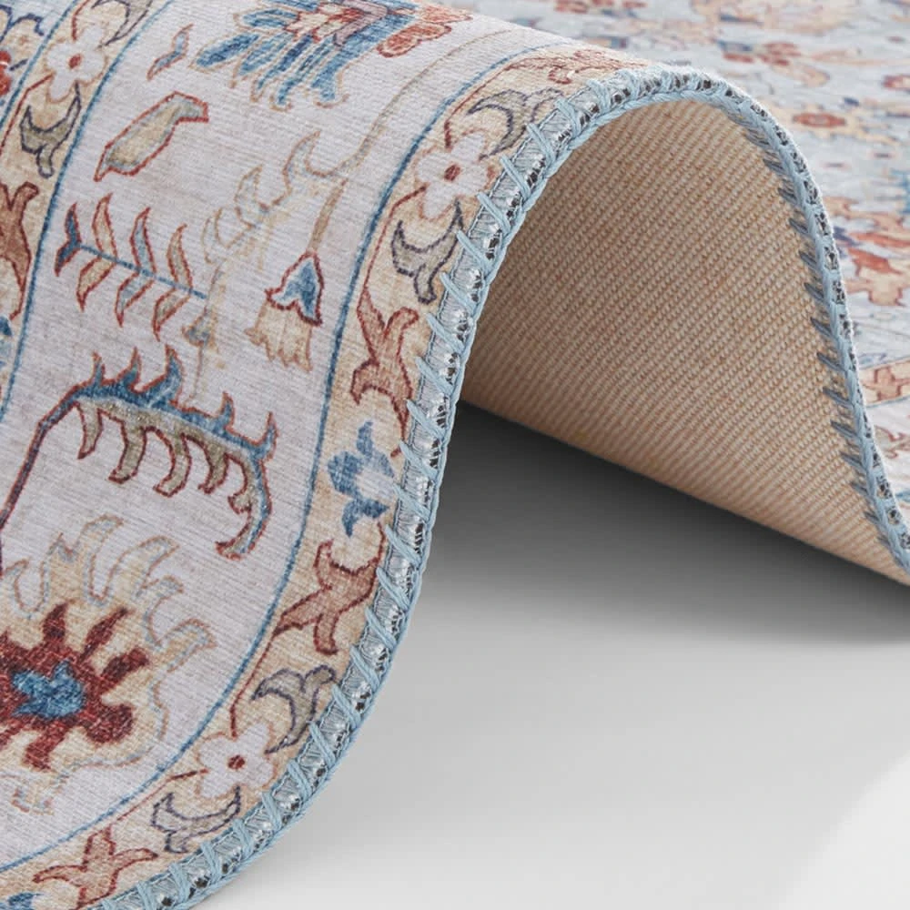 Nouristan Orientalischer Samt-Teppich Fransen Antique Heriz Pastell-Farben Rose Himmelblau